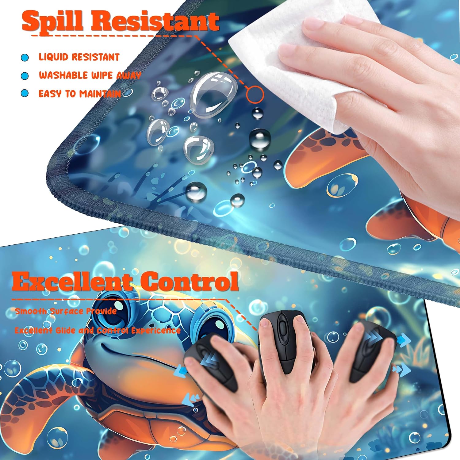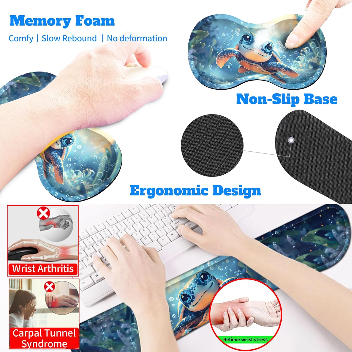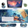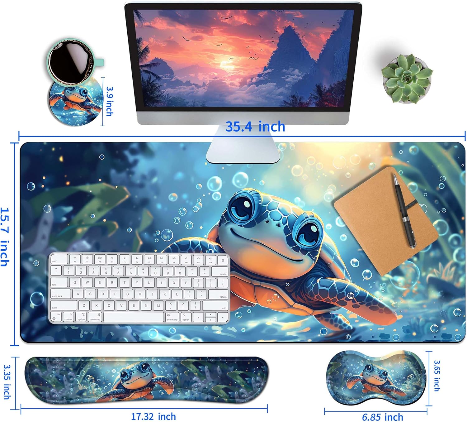 4-Piece Extended Large Mouse Pad Set for Women Men with Turtle Anime Design Includes 35.4 x 15.7 XXL Large Mouse Pad Keyboard Wrist Rest Mouse Wrist Support and Coaster for Office Home
