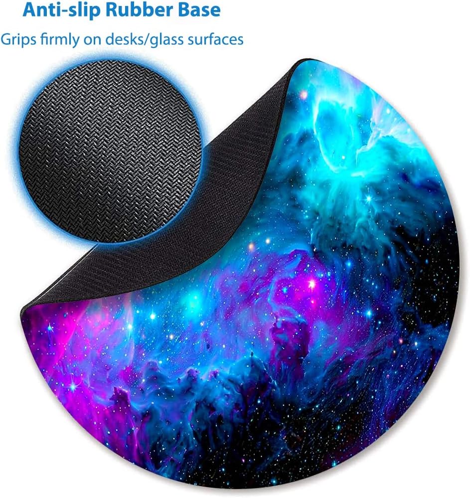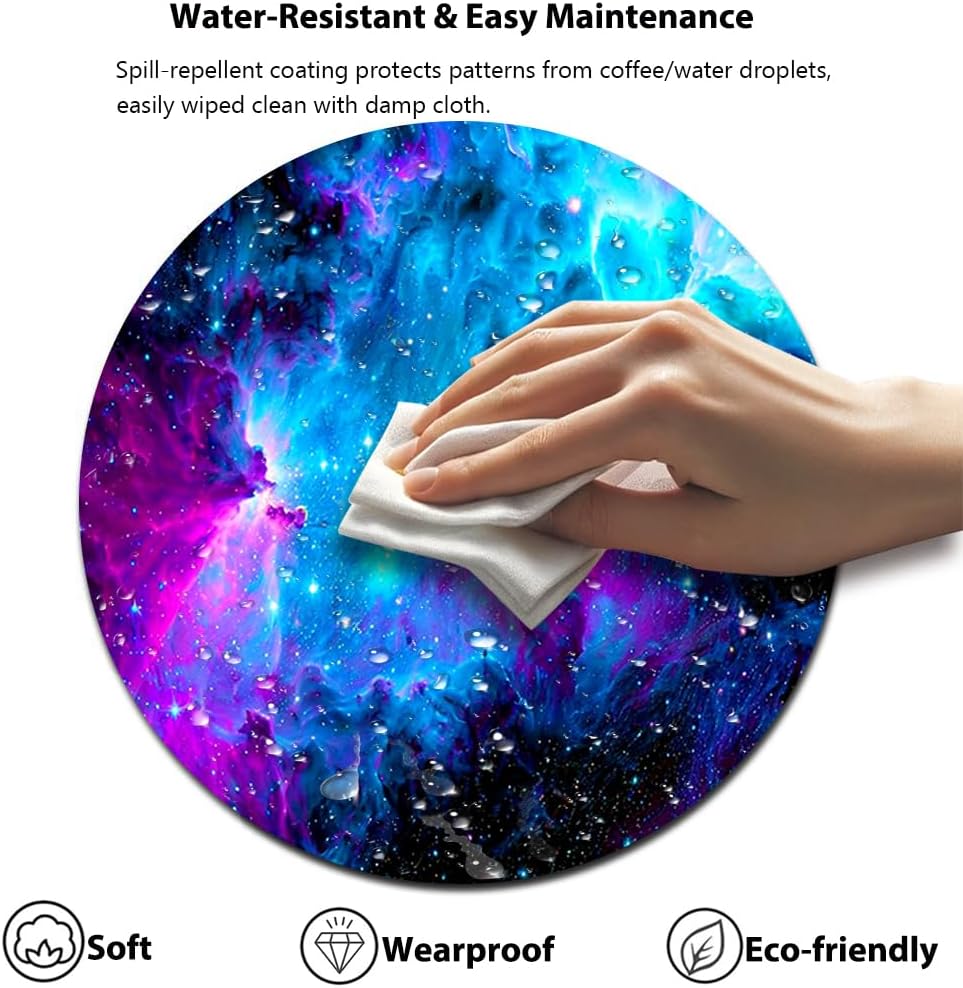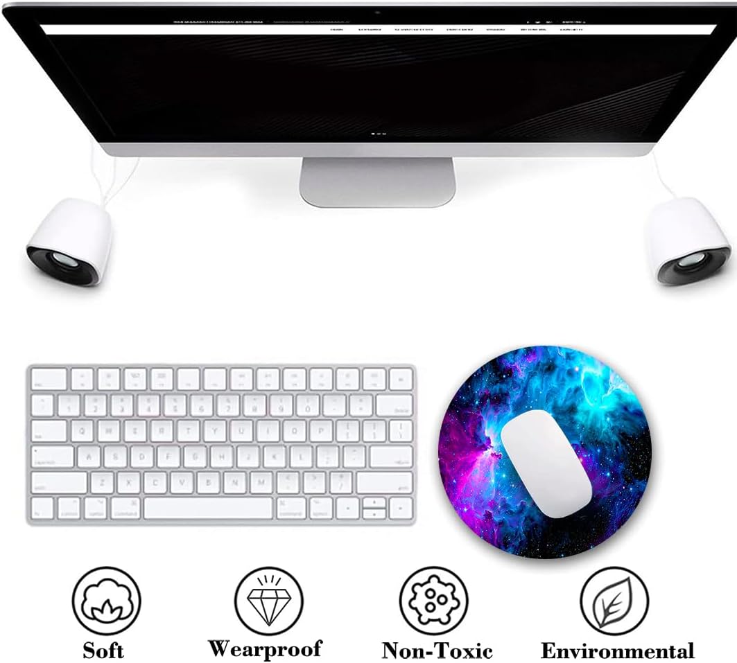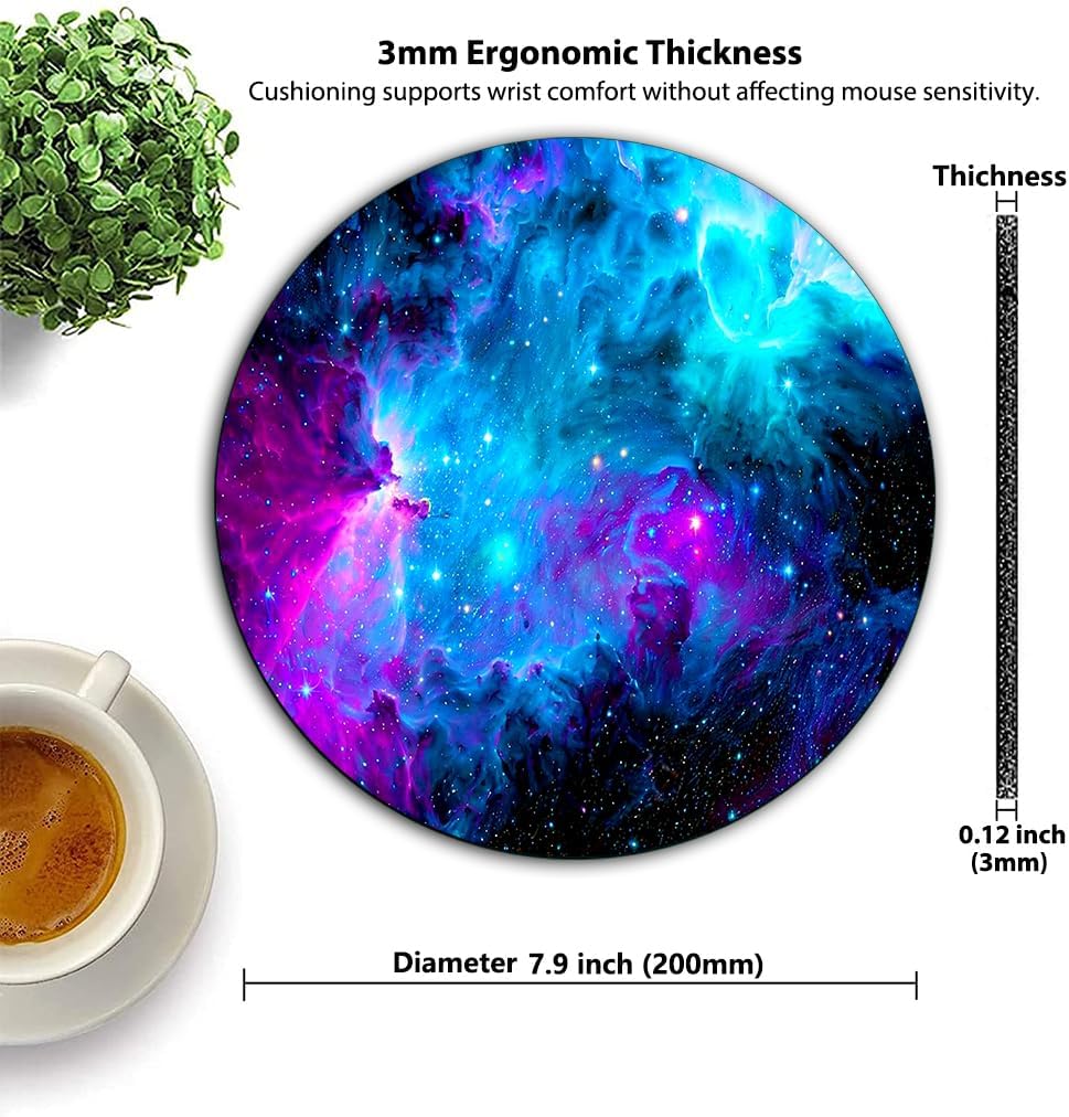 7AN.M. 7.9-Inch Round Mouse Pad – Cosmic Nebula Blue & Purple Space Galaxy, Anti-Slip Natural Rubber Base & Smooth Fabric Surface Circular Mat