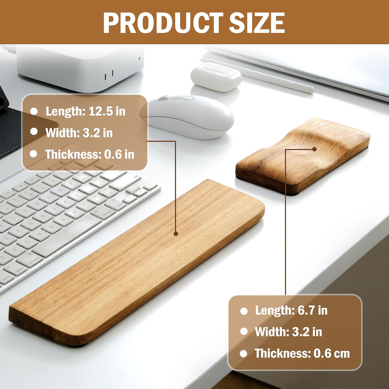Bring comfort and style to any desk with this acacia wood keyboard wrist rest and mouse pad set—a perfect gift for gamers, writers, and office workers.