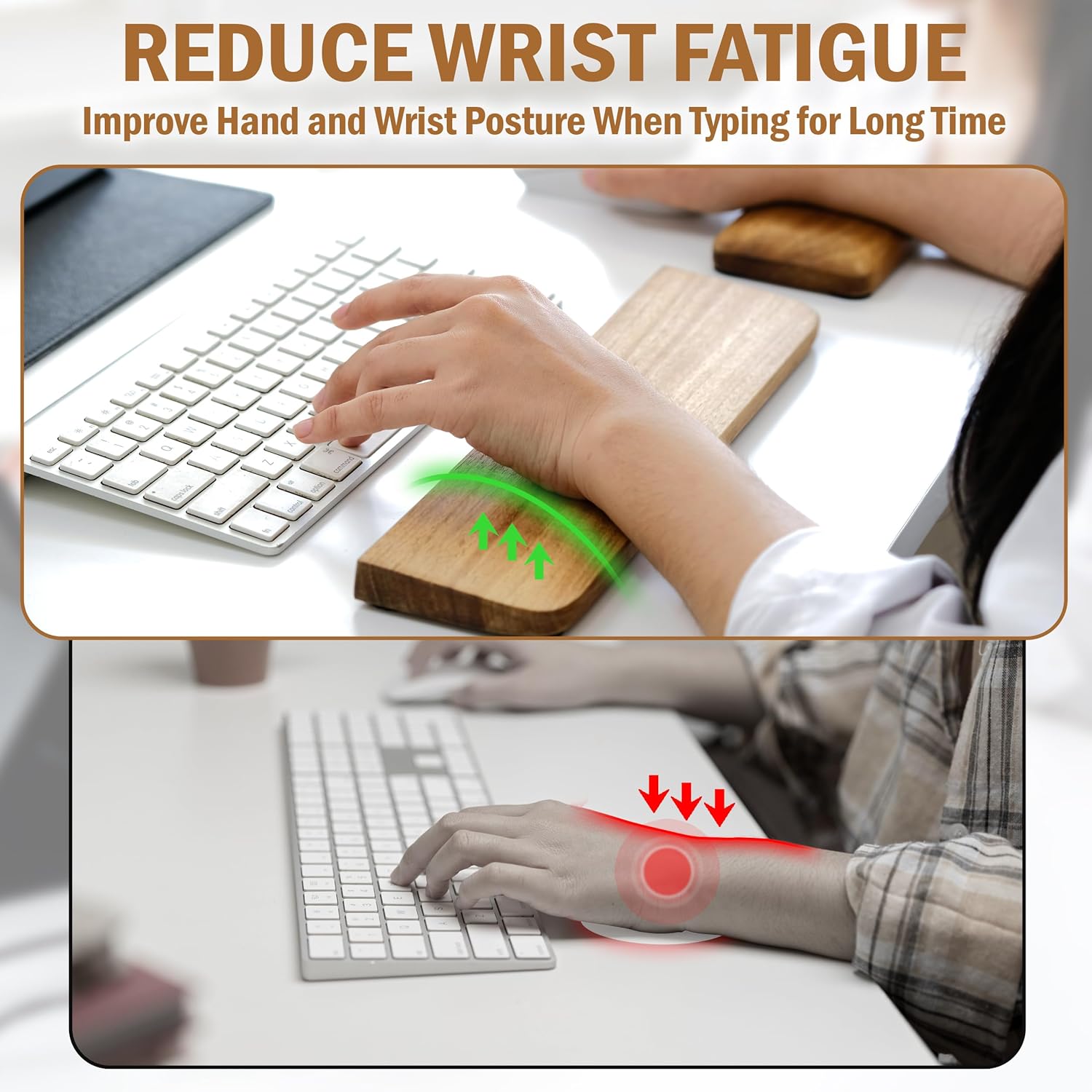 Premium acacia wood wrist rest set with non-slip base, fits 60%–TKL keyboards for superior comfort.