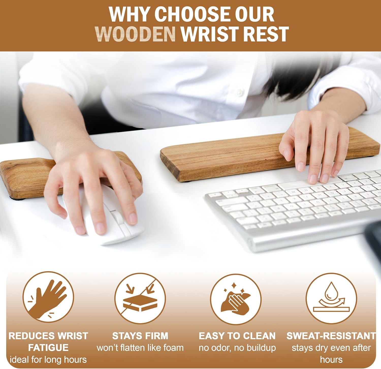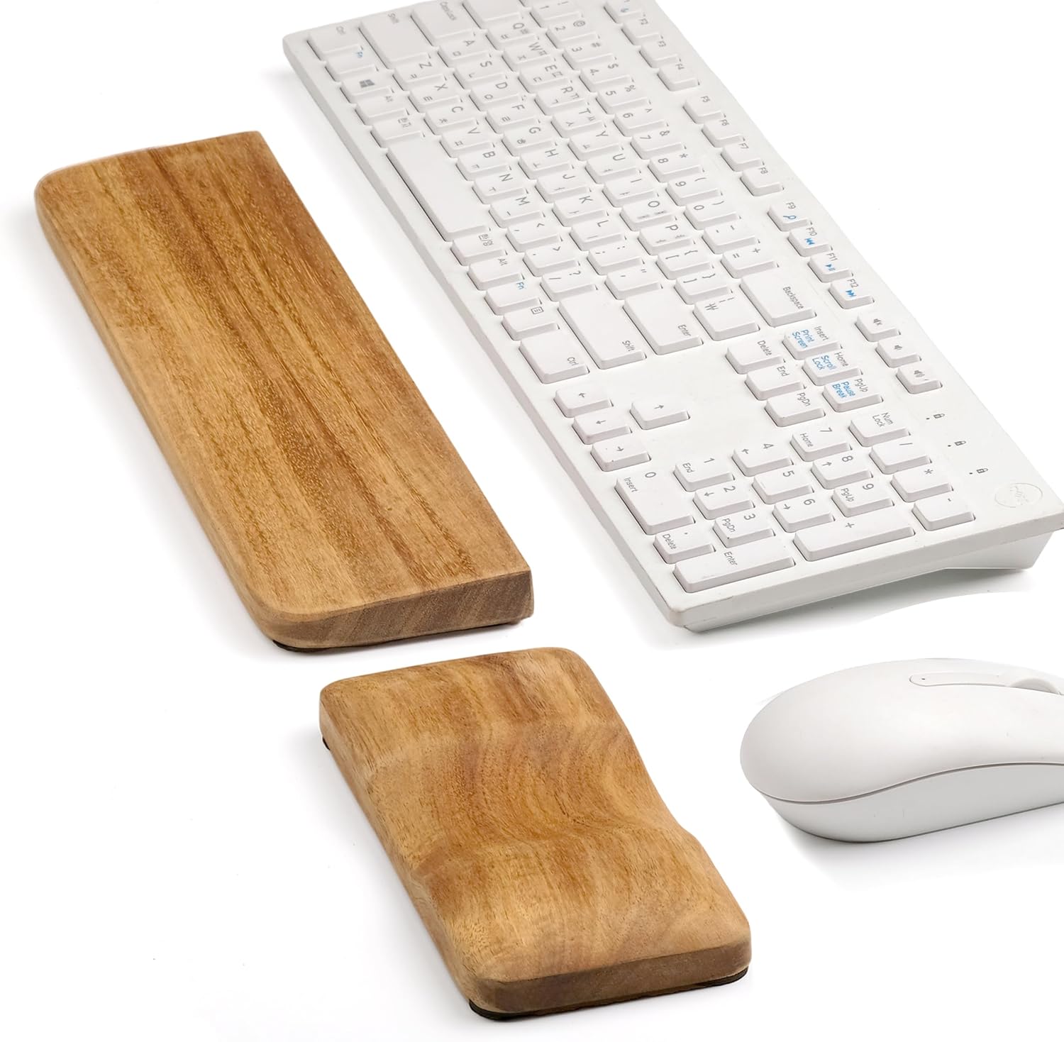Acacia Wood Keyboard Wrist Rest & Mouse Pad Set – Ergonomic Wooden Support for Typing & Gaming, Non-Slip Base, Pain Relief, Easy to Clean, Fits 60% & 65% Mechanical Keyboards