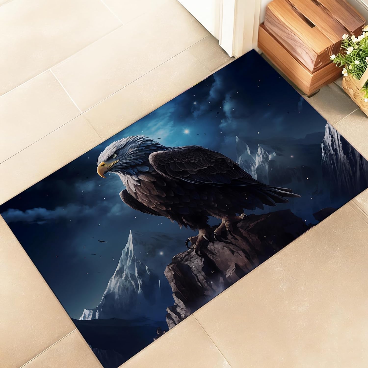 amepay Majestic Eagle Indoor Door Mat, Stylish 17×29.5in Non-Woven Fabric Floor Doormat with Bold Mountain Scene,Night Sky Star Doormats, for Porch Insider,Bedroom,Living Room, Decor Rug Gifts