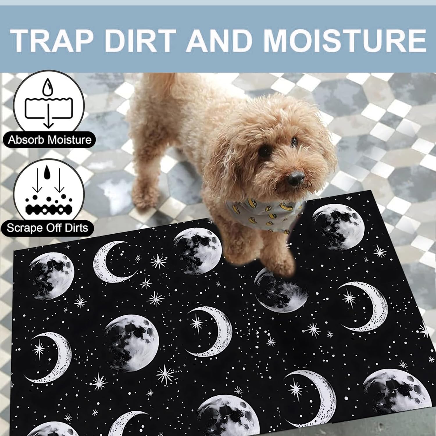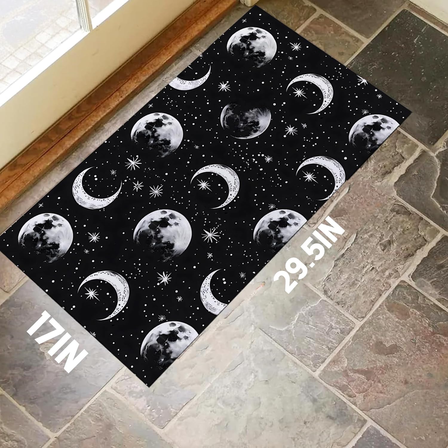 amepay Star and Moon Indoor Door Mat, Stylish 17×29.5in Non-Woven Fabric Floor Doormat with Black and White Night Sky,Cosmic Style Doormats, for Porch Insider,Bedroom,Living Room, Decor Rug Gifts