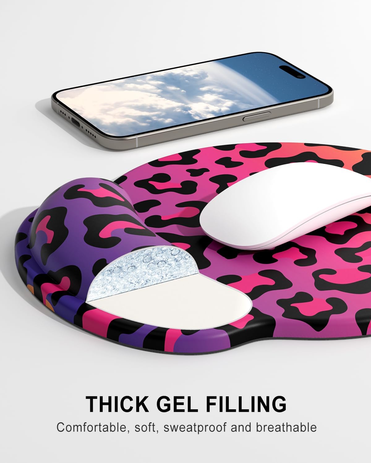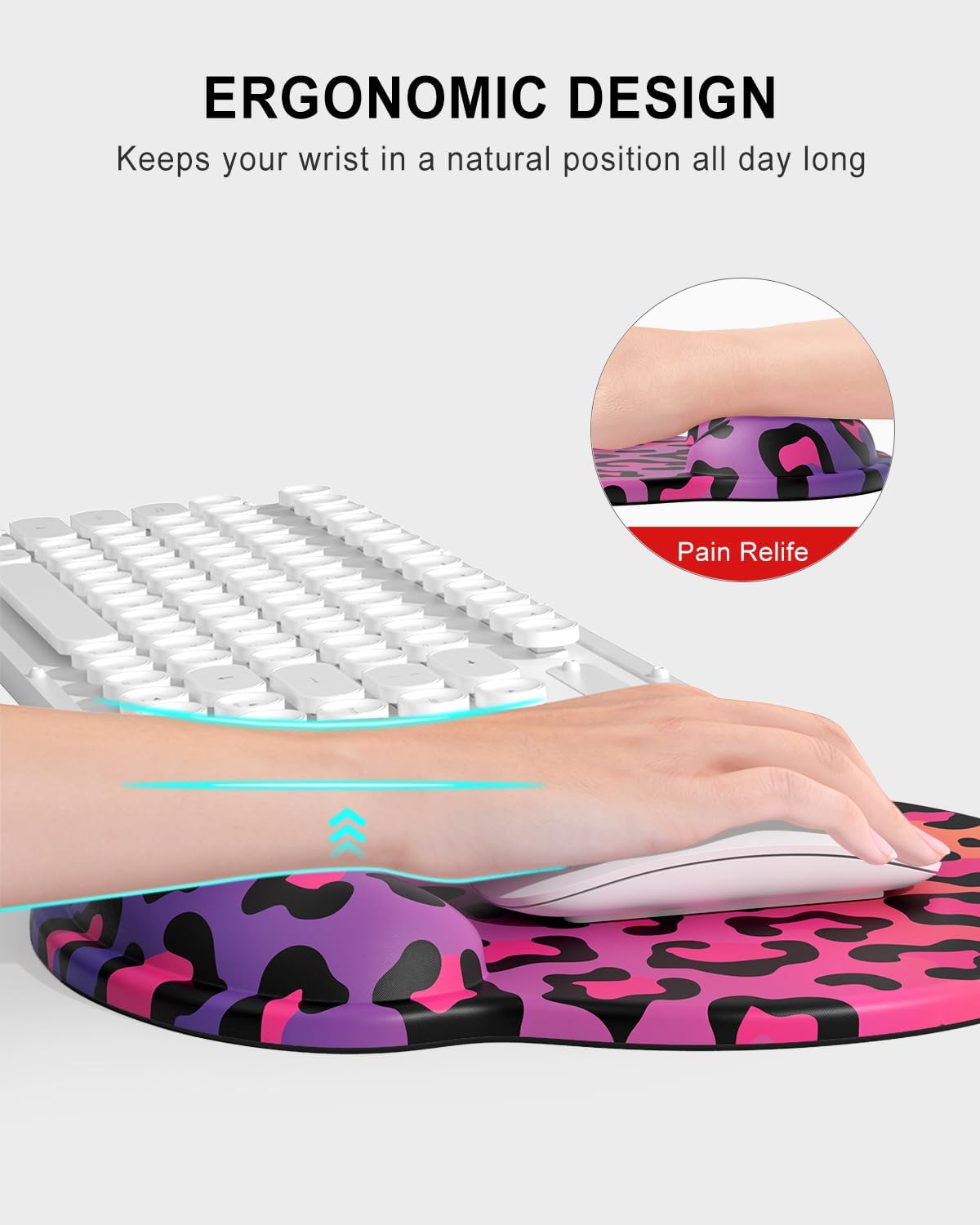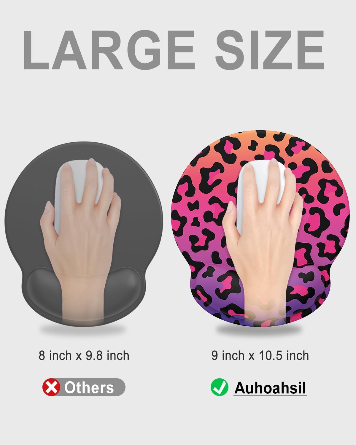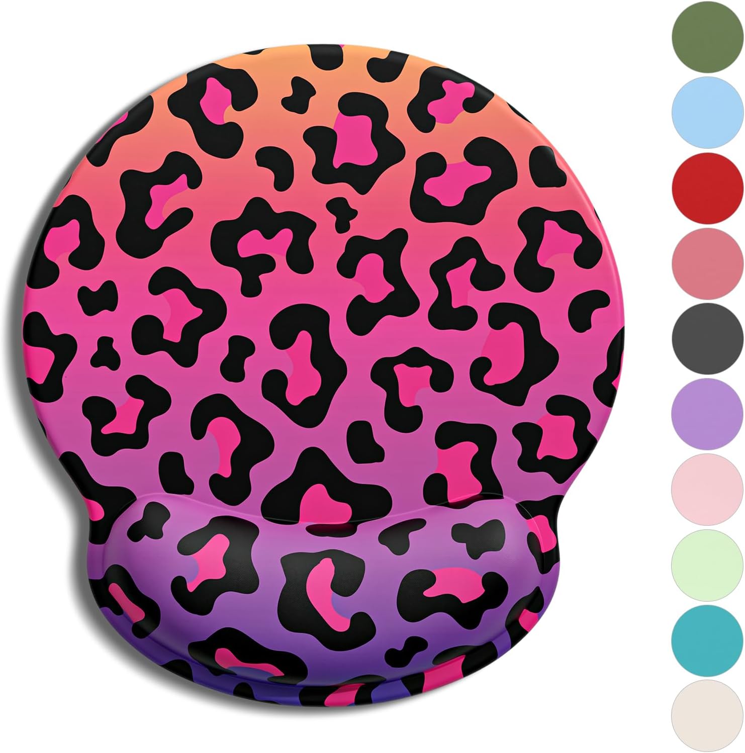 Auhoahsil Ergonomic Mouse Pad with Wrist Rest, Comfortable Silicone Non-slip Computer Pain Relief Gel Mouse Mat with Wrist Support for Gaming, Work, Office, Women & Men, Cute Pattern, Colorful Leopard