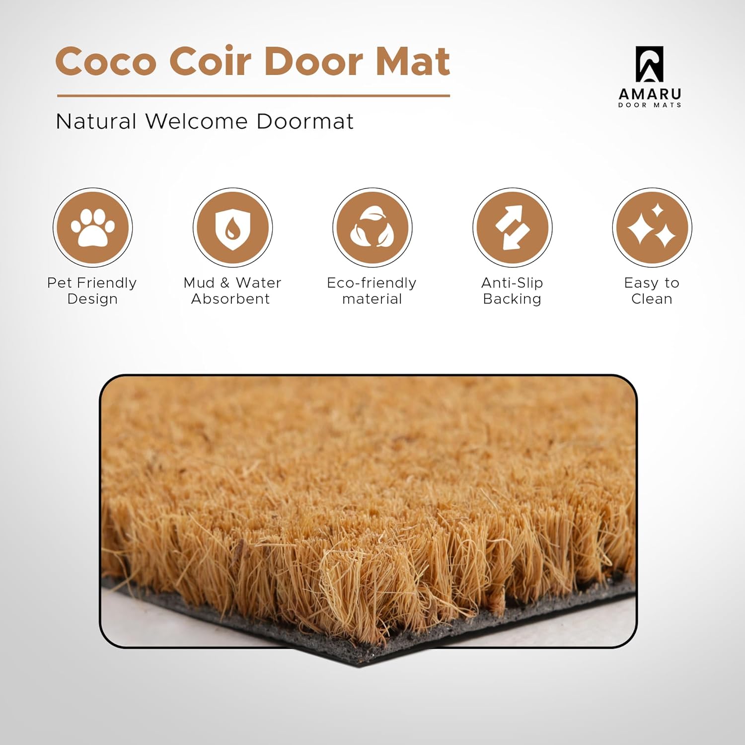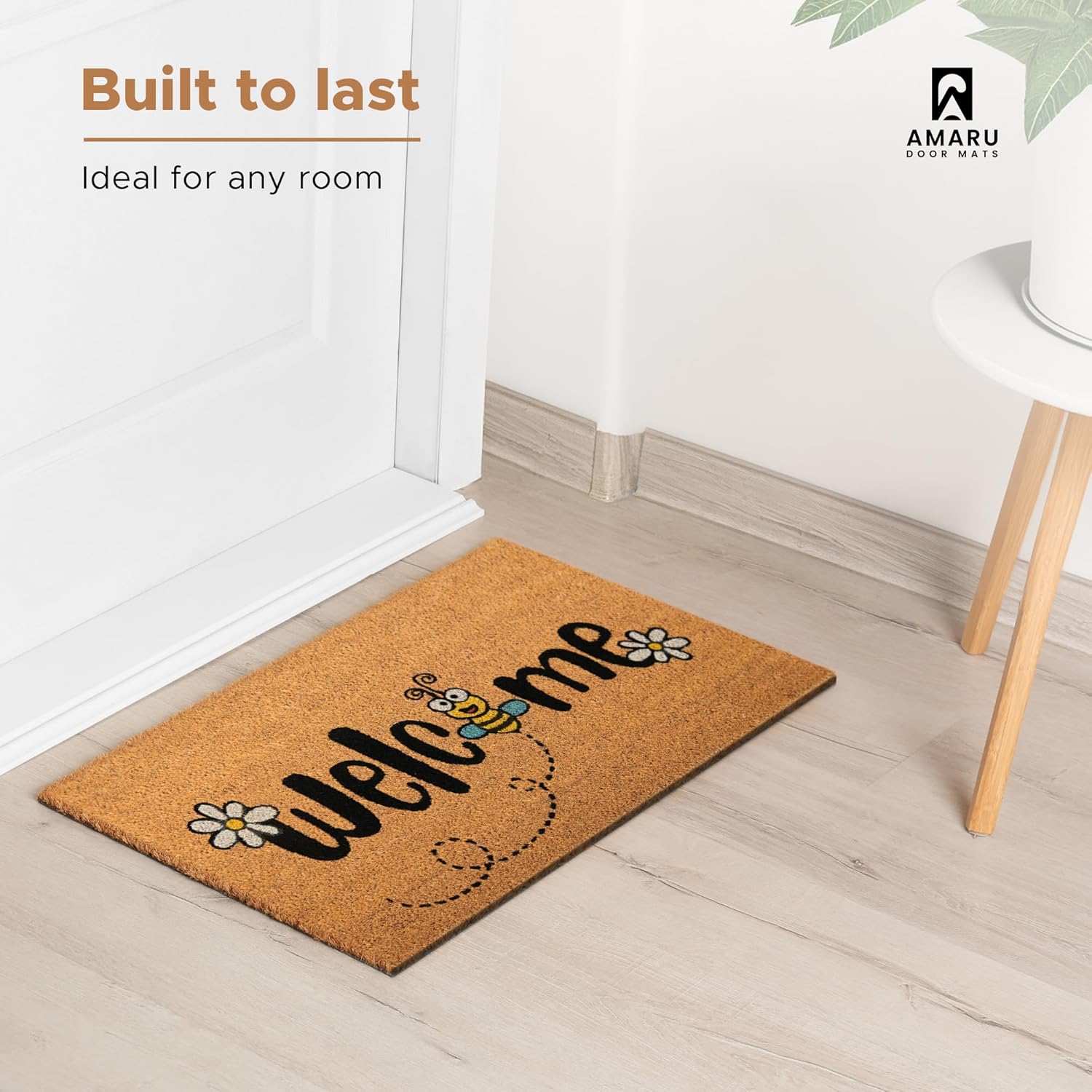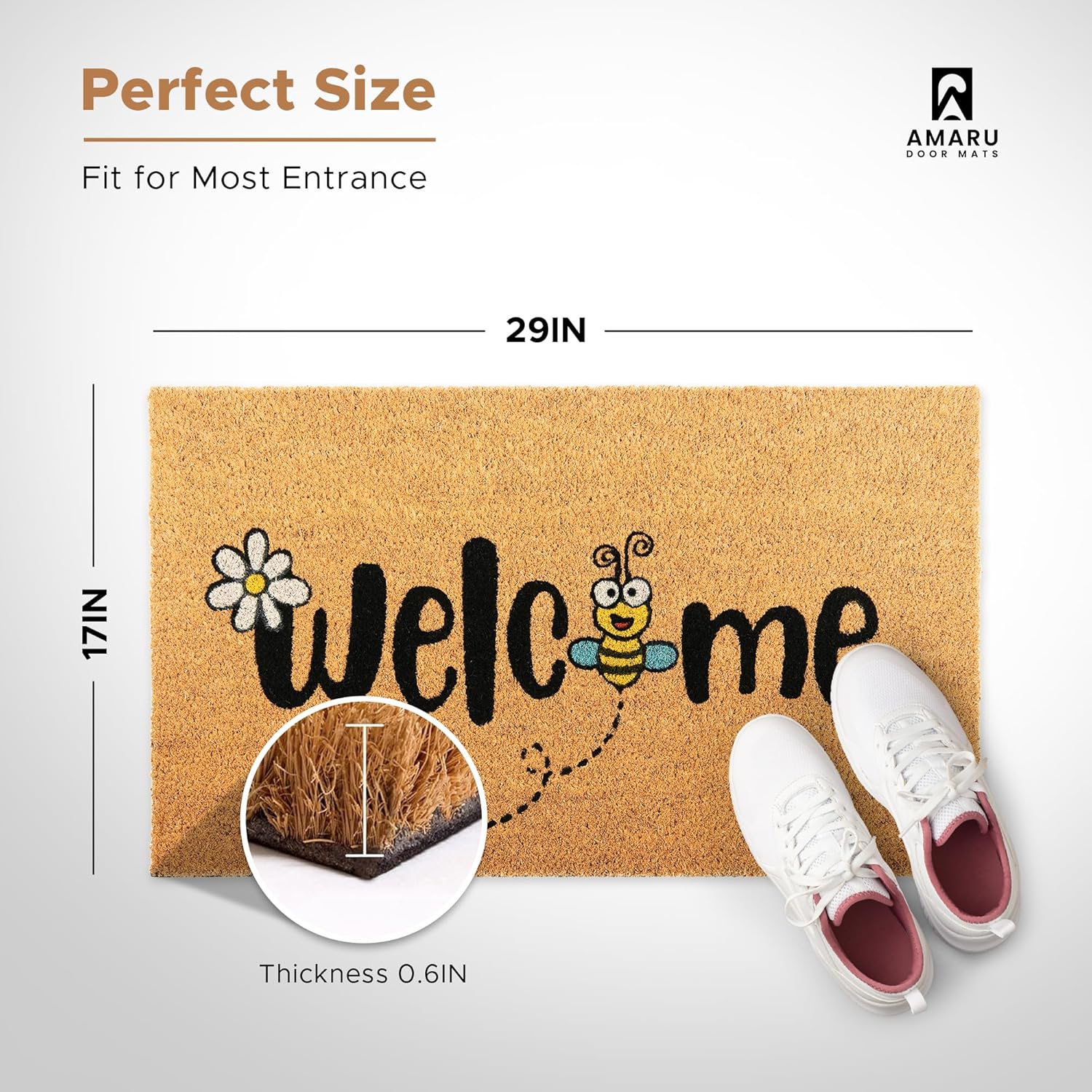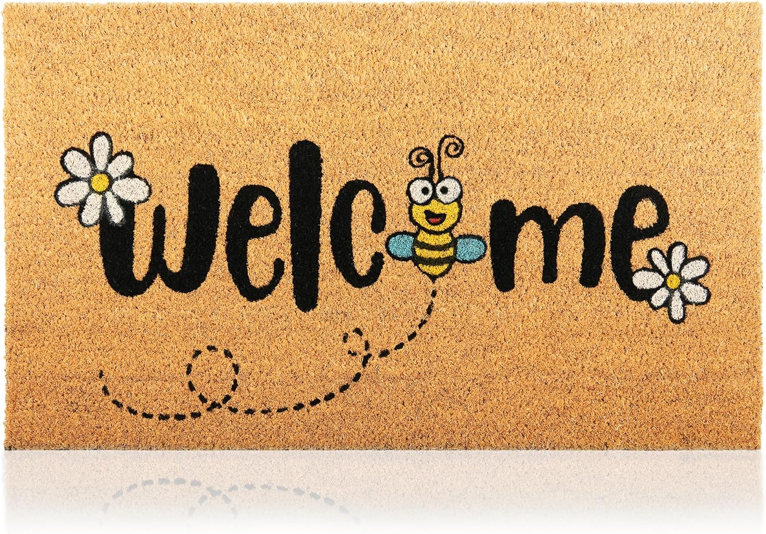 Bee – 17″x29″ – Coir Door Mat with Heavy Duty Backing – Welcome Mats for Entryway, Porch – Anti-Slip PVC & Coconut Fiber Surface – Natural Home Accessories, Minimalist Original Design