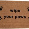 Make a welcoming statement with the BIRDROCK HOME “Wipe Your Paws” doormat, designed to provide both style and function for larger entryways. This oversized mat measures 24 x 36 inches and weighs 7.6 pounds, offering extensive coverage for your front door, porch, or patio. Constructed from thick, natural coir fibers with a vinyl backing, it effectively traps dirt and moisture while preventing water from seeping through, ensuring your floors stay clean and dry. The durable vinyl backing provides stability and prevents slipping, making it ideal for high-traffic areas. Easy to maintain, simply shake or brush off dirt to keep it looking fresh. At BIRDROCK HOME, we are committed to crafting home products that combine practical use with a sense of style, creating welcoming spaces for you and your guests.