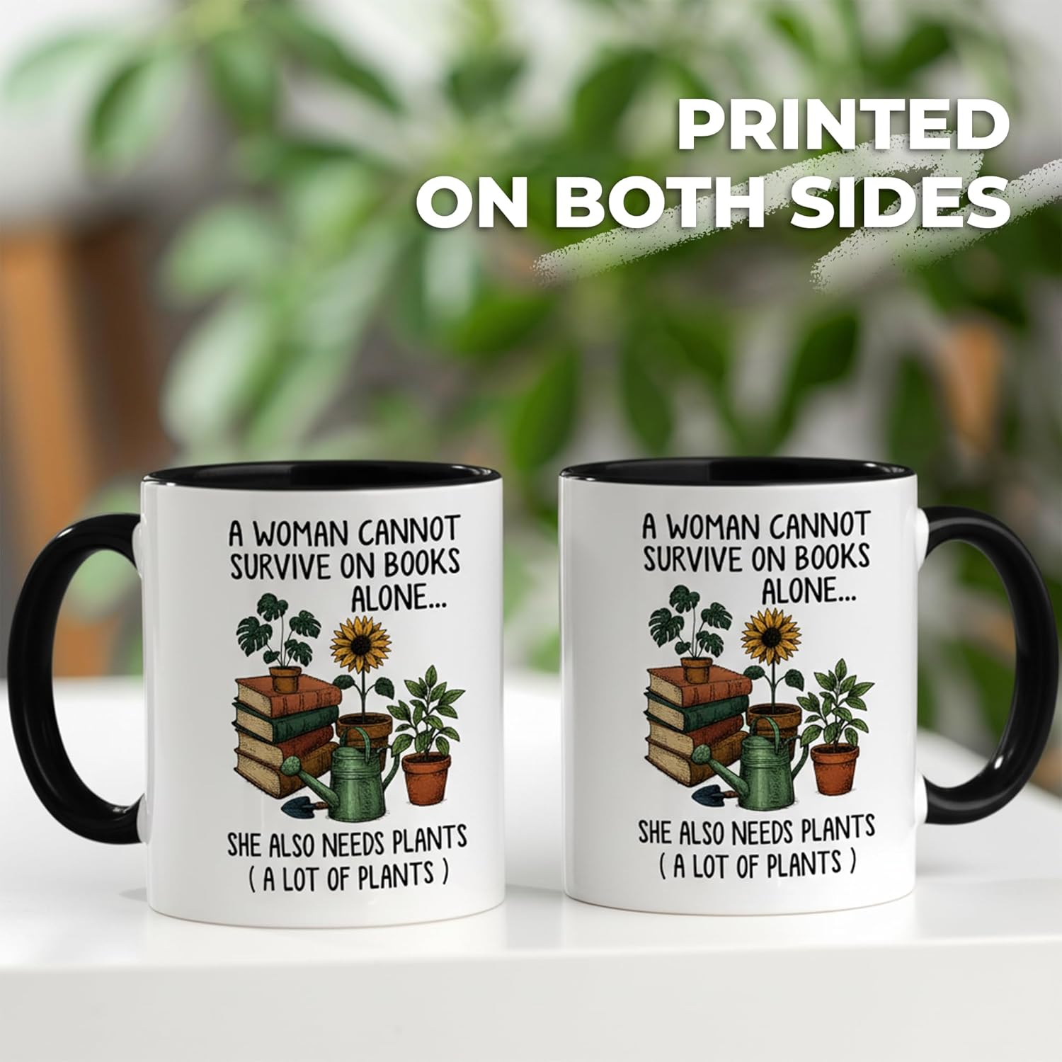 Book and Plant Lover Coffee Mug, Mugs for Reading and Gardening Lovers, Book Lover & Gardener Mug, Gardner Gifts for Women, Novelty Design for Bookworm and Gardening Enthusiasts