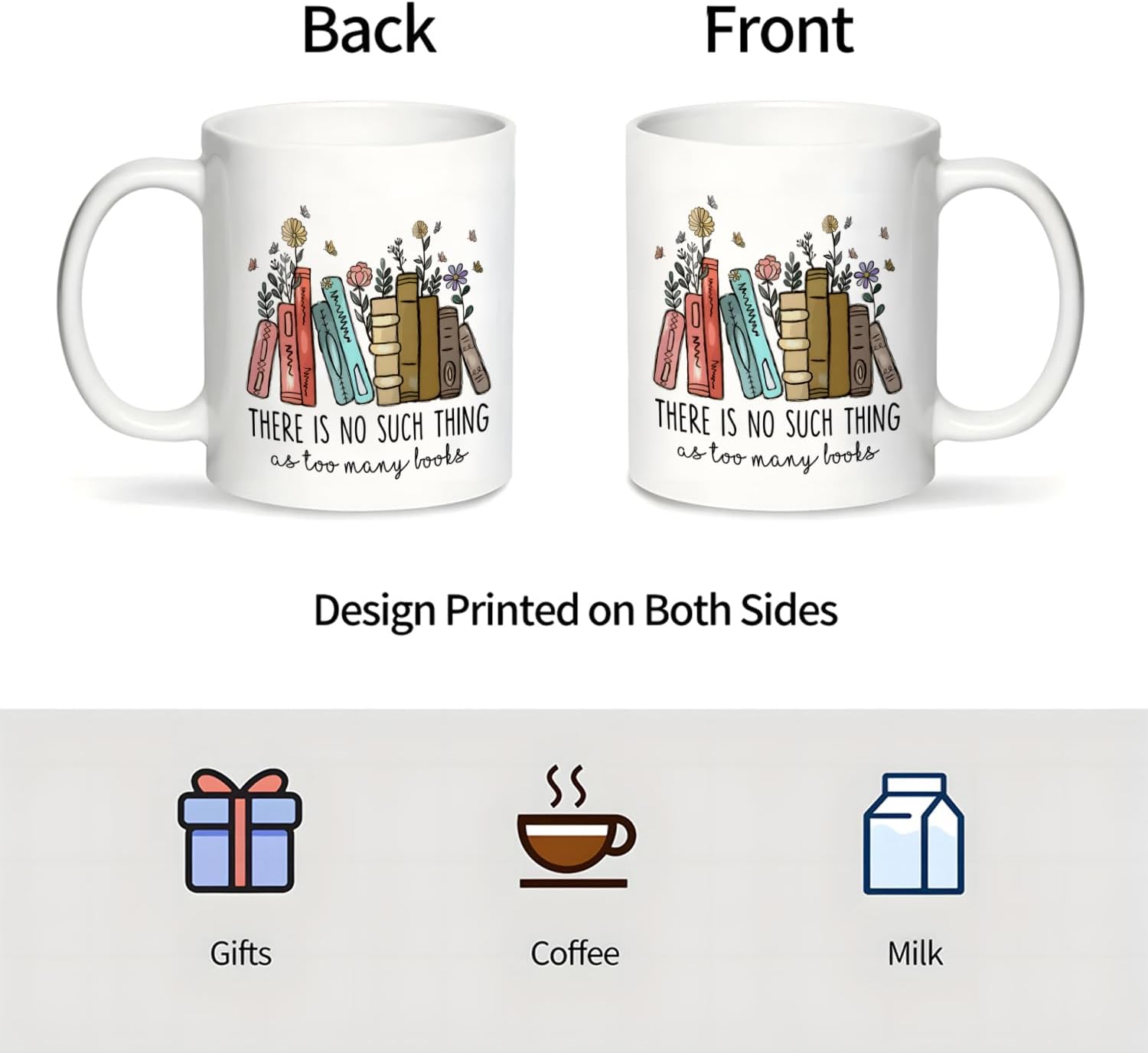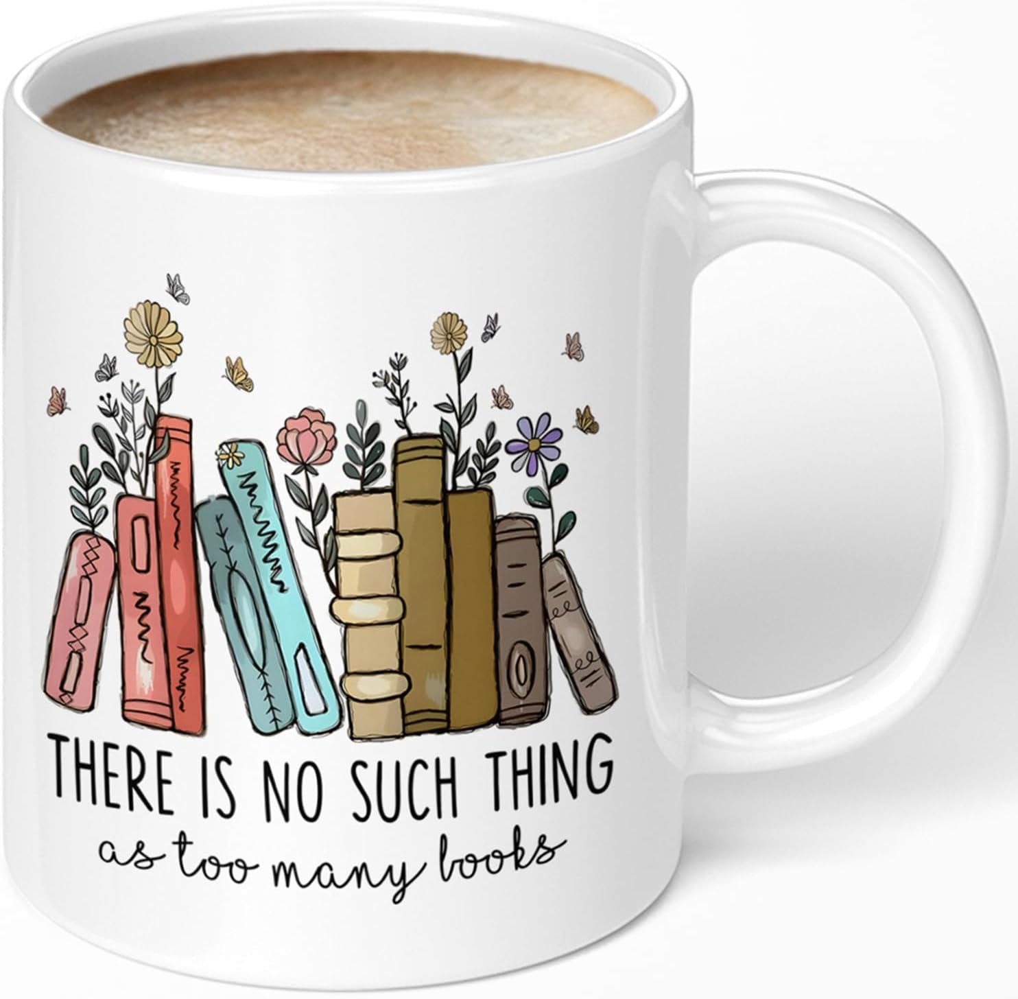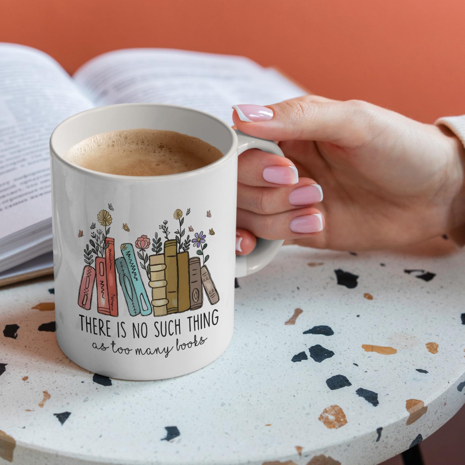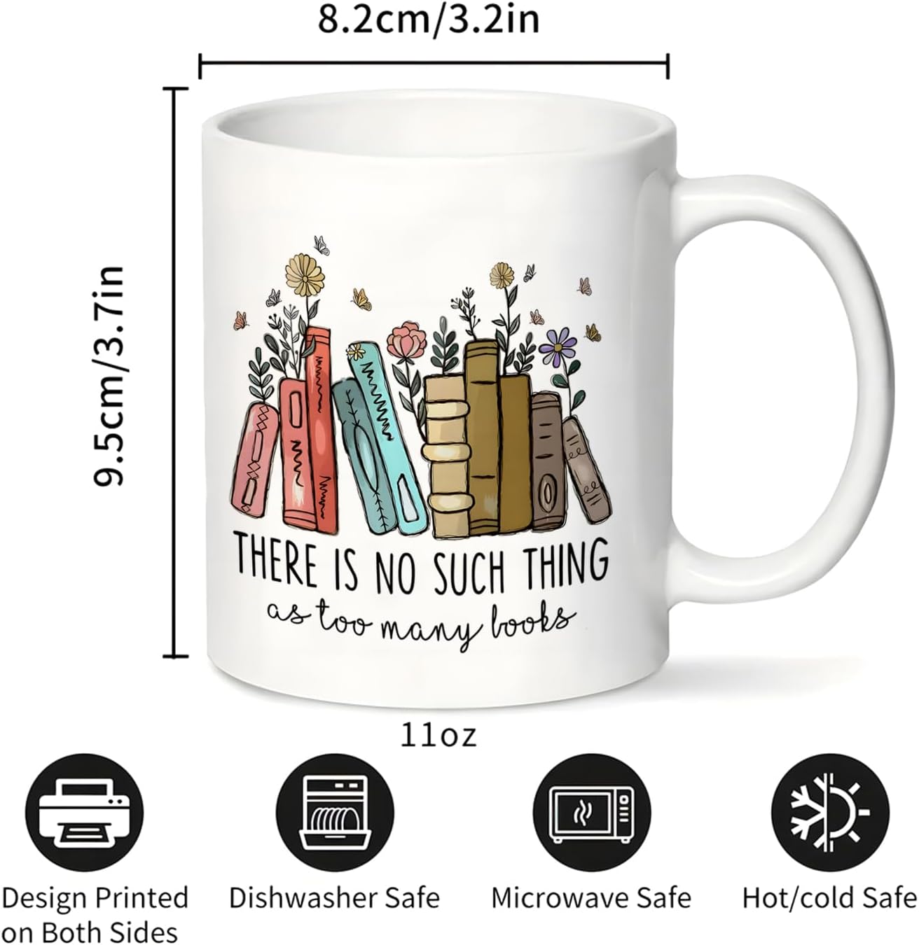 Book Lovers Coffee Mug 11oz – Book Lovers Gifts for Women – Librarian Mug – There Is No Such Thing As Too Many Books – Bookish Gifts for Birthday Christmas Graduation Reader Mom Teacher Friends