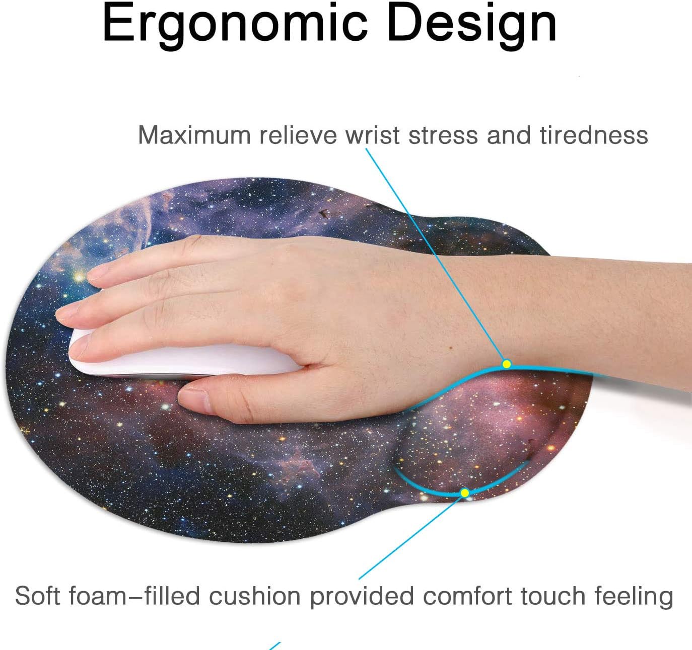 Britimes Ergonomic Mouse Pad with Wrist Support Purple Blue Cosmos Nebula Galaxy Non-Slip Rubber Base Mousepad for Home Office Gaming Working Computers Laptop Easy Typing & Pain Relief