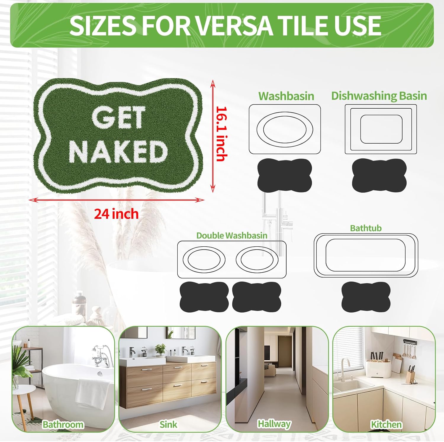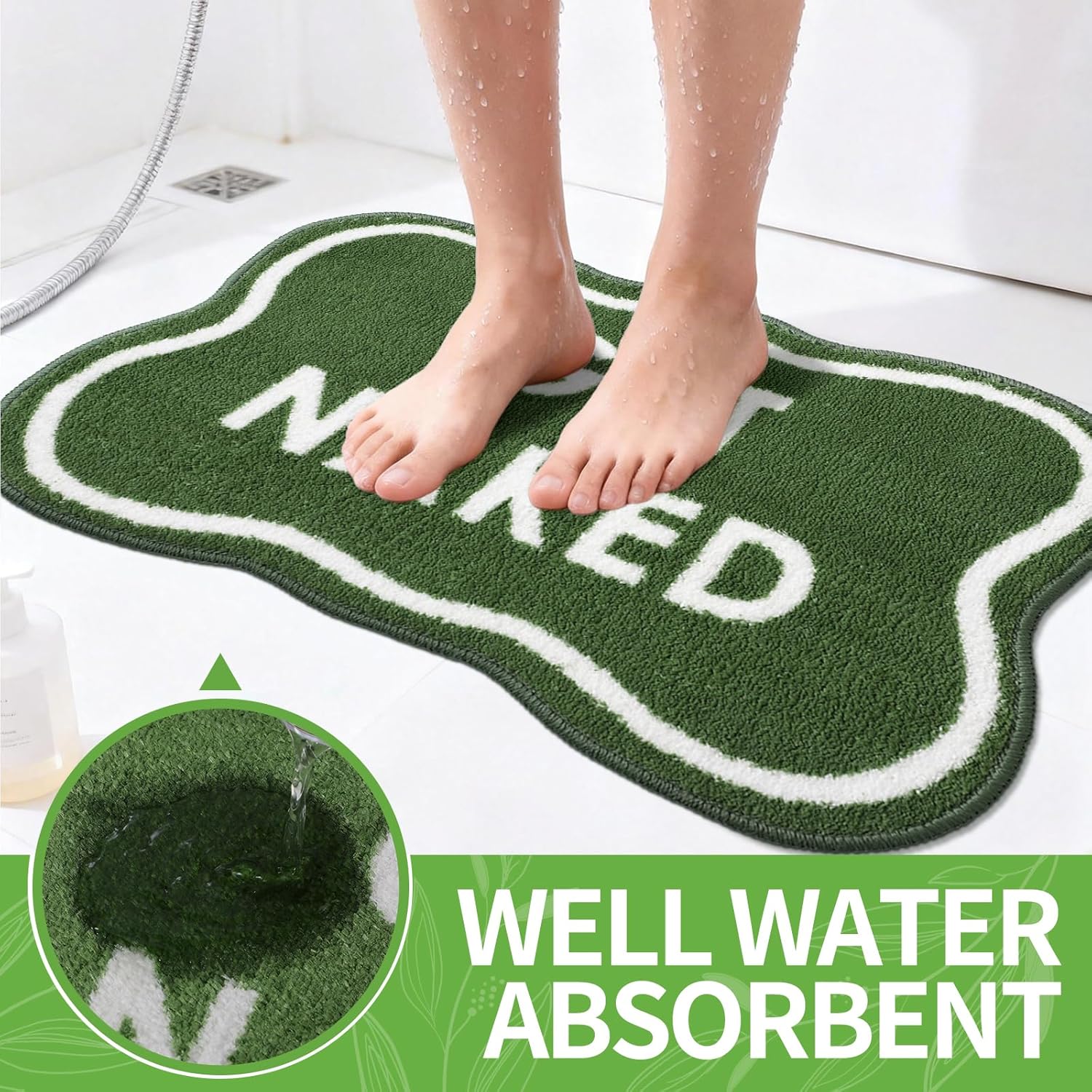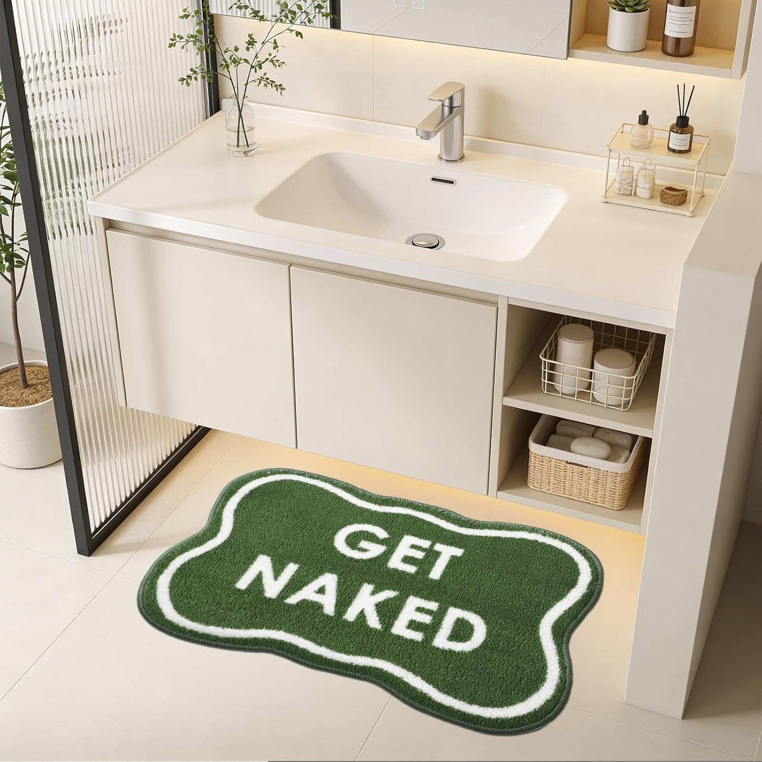 BSSN Get Naked Bath Mat Cute Bathroom Rugs 16″ x 24″ Non Slip Absorbent, Green Scalloped Bath Rug for Bathroom Floor and Shower Funny Decor for Apartment, Machine Washable