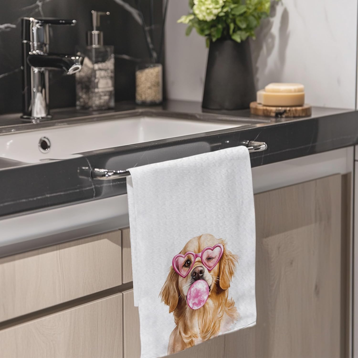 Cabana Bro Golden Retriever Gifts Bathroom Hand Towels, Golden Retriever Gifts for Women, Funny Goldie Dog Blow Bubbles Decorative Hand Towels for Kids Bath Room Washroom Spa Dorm, 16×24 Inch