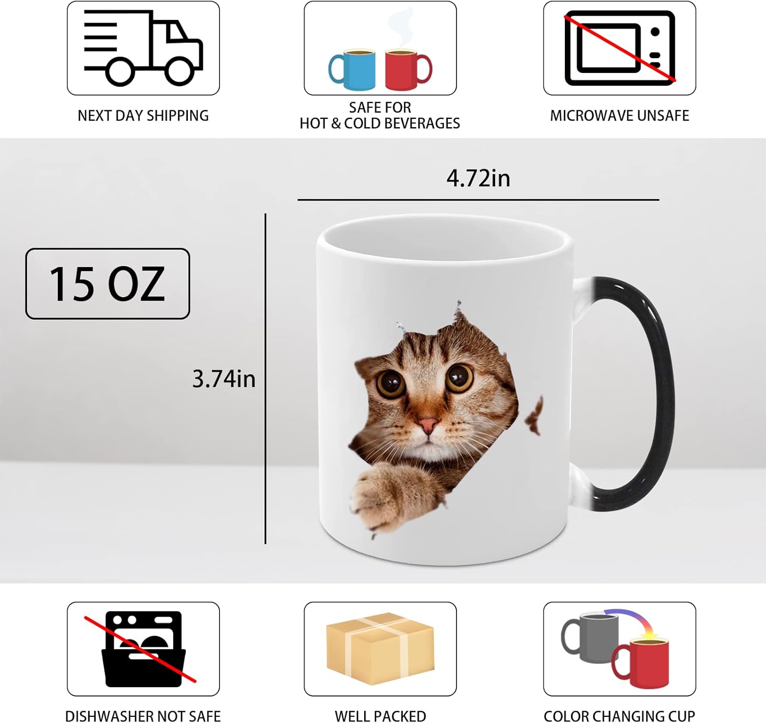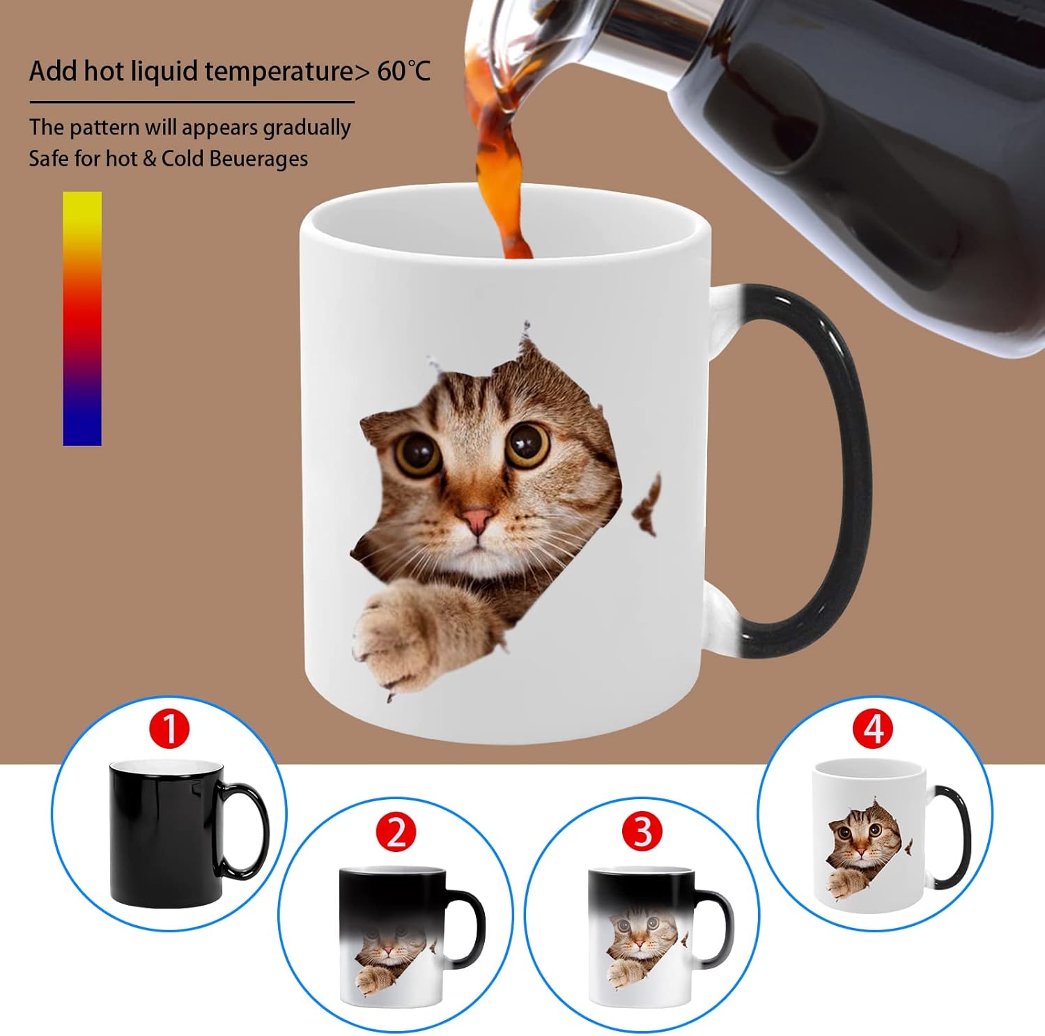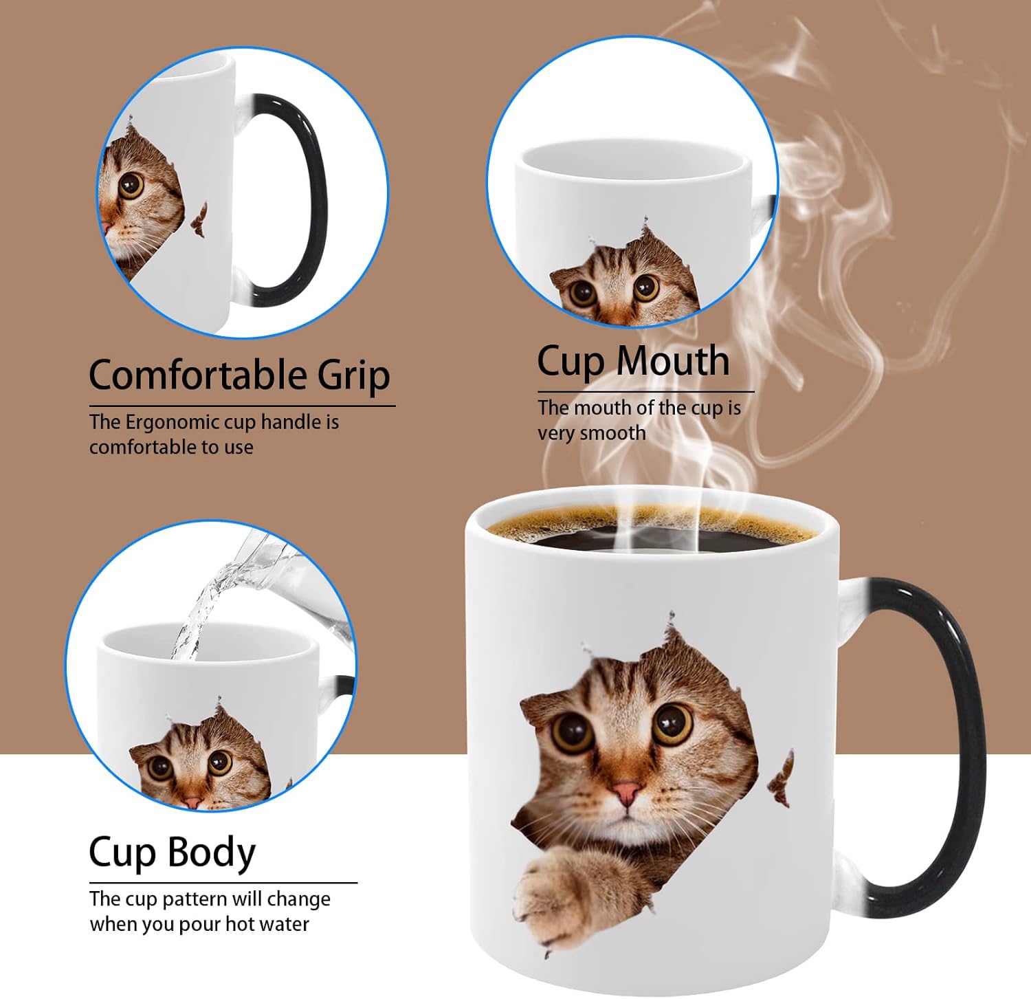 Caliamary Heat Changing Mug, Funny Cat Heat Changing Ceramic Coffee Mug, 11 oz Heat Sensitive Color Changing Coffee Mug Cup, Cute Xmas Gift Mug for Women Men Kids… (Cat)