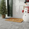 Made of coir, a dense fiber extracted from coconut husk. Coir is a renewable resource that is durable and coarse, excellent for scraping shoes clean. Vinyl backed for increased durability and to help prevent movement, coir doormats are weather tolerant, absorb moisture and retain their shape. For best results keep in a sheltered area such as a covered porch, keeping extreme moisture and sunlight to a minimum. Vacuum, sweep, or lightly hose clean.