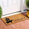Made of coir, a dense fiber extracted from coconut husk. Coir is a renewable resource that is durable and coarse, excellent for scraping shoes clean. Vinyl backed for increased durability and to help prevent movement, coir doormats are weather tolerant, absorb moisture and retain their shape. For best results keep in a sheltered area such as a covered porch, keeping extreme moisture and sunlight to a minimum. Vacuum, sweep, or lightly hose clean.