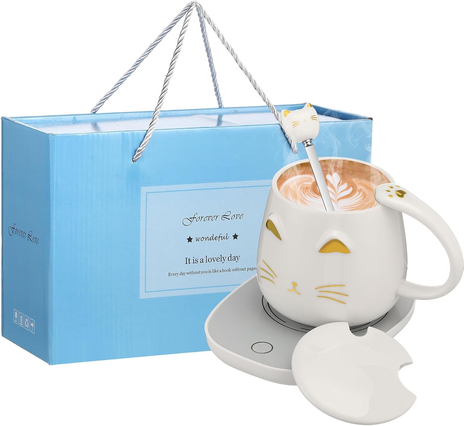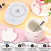 Cat Coffee Cup Warmer Coffee Warmer with Mug for Women Electric Coffee Mug Heater Temperature Control Ceramic Cute Cat Smart Coffee Warmer for Office Christmas Birthday Gift (White)