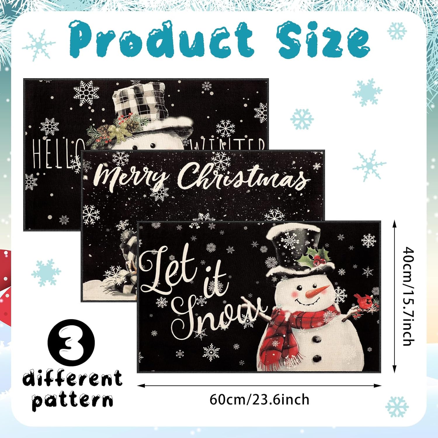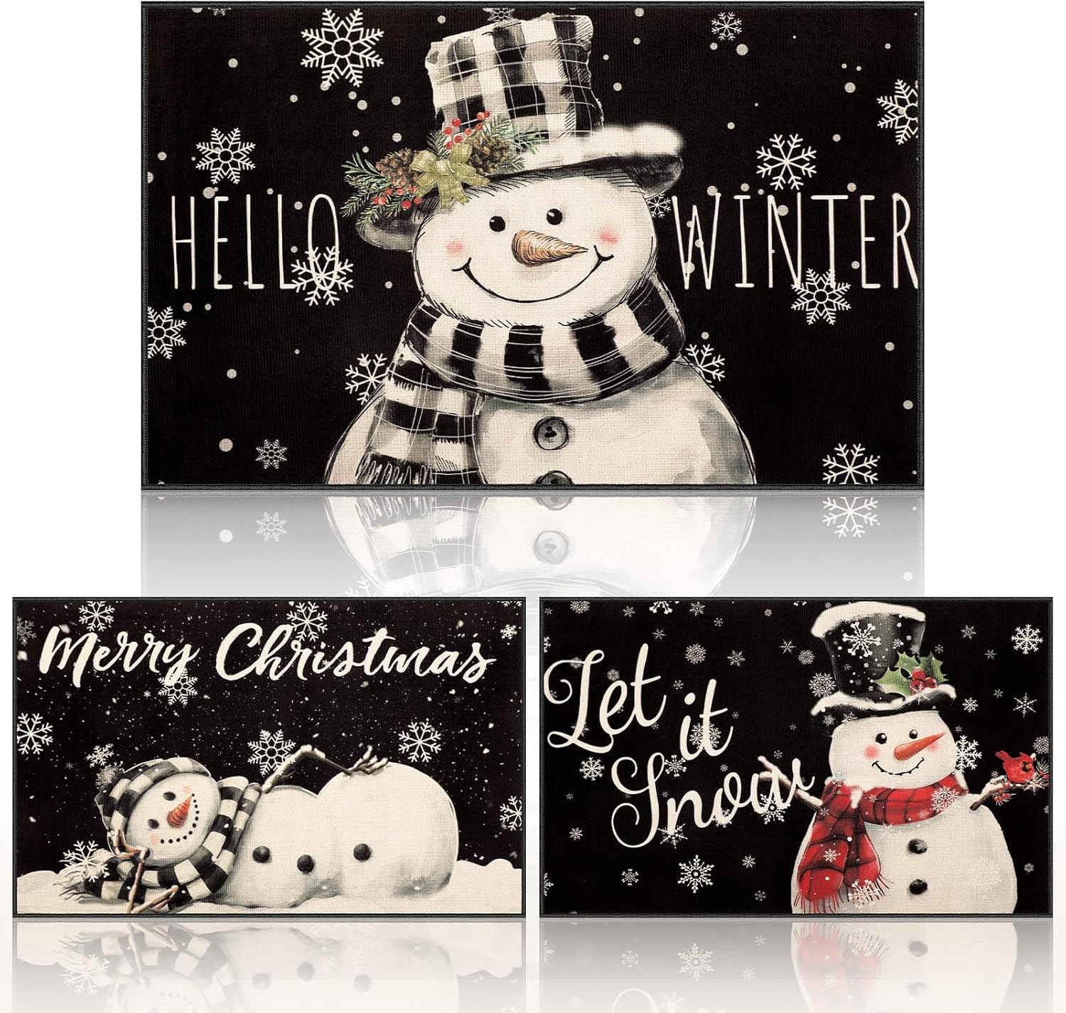 Ceenna 3 Pcs Winter Snowman Welcome Front Door Mats Set Hello Winter Let It Snow Outdoor Mat Merry Christmas Kitchen Rugs Decorative Seasonal Doormat Holiday Rugs for Indoor Outdoor Decor 16 x 24 Inch