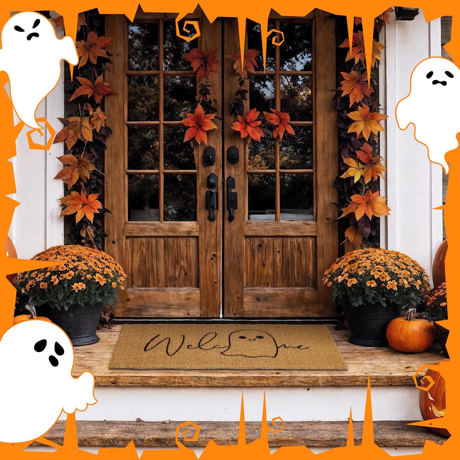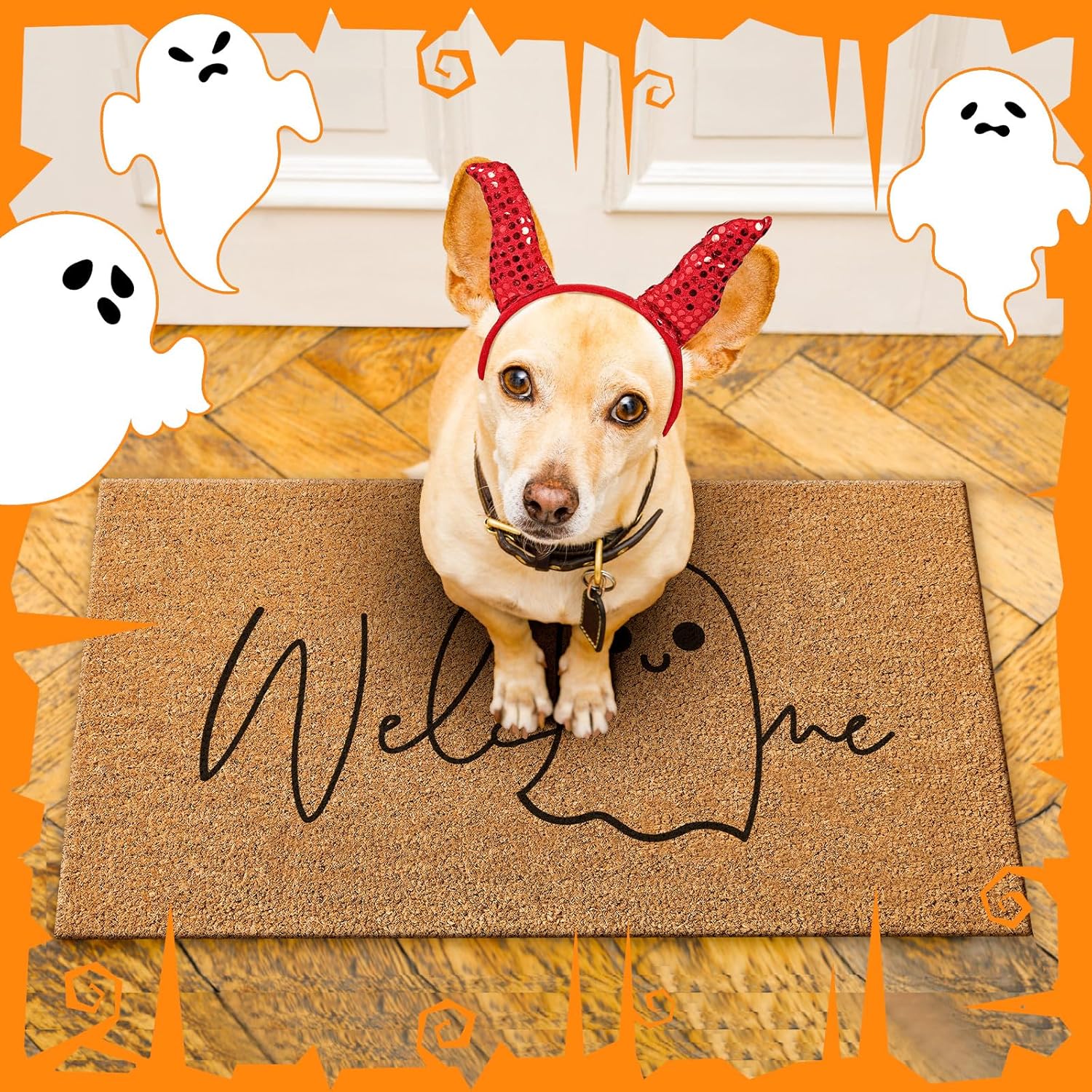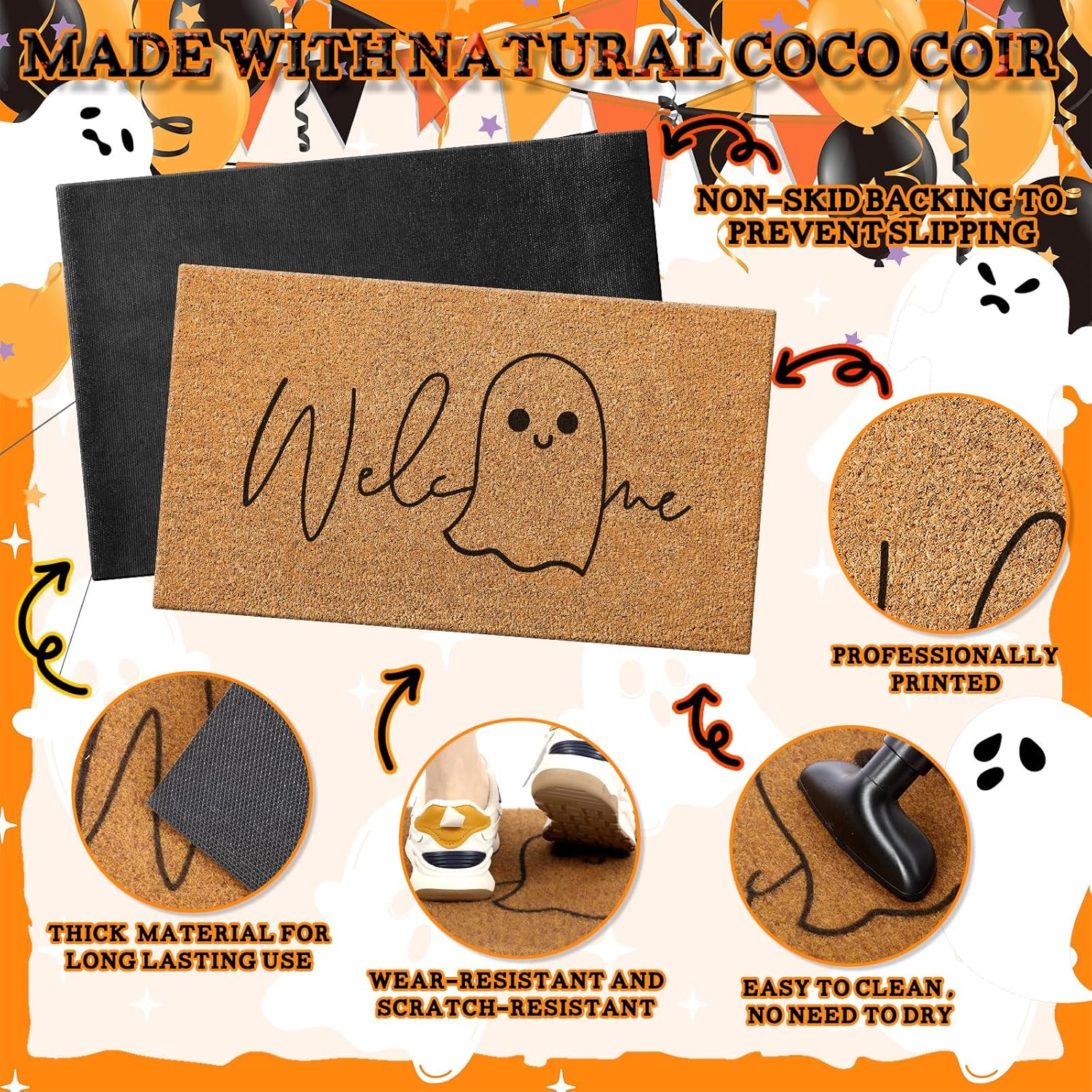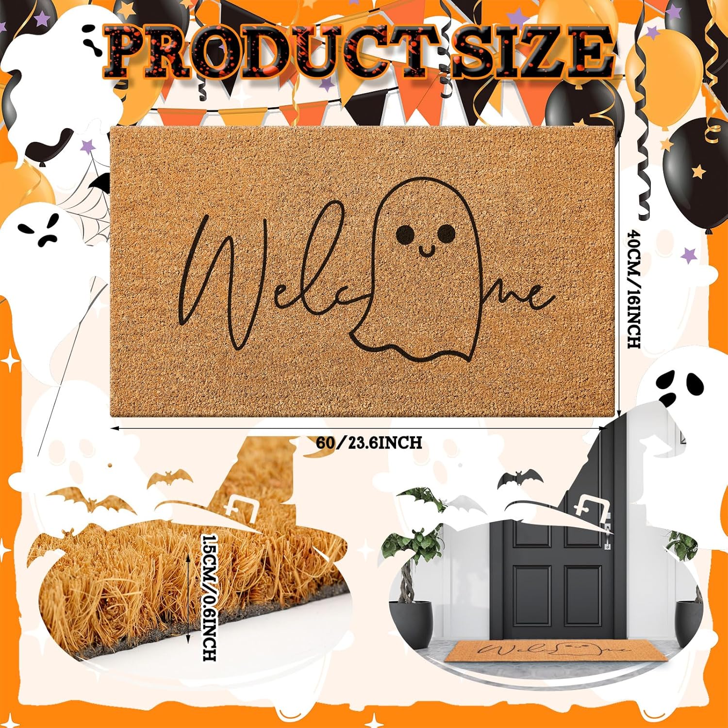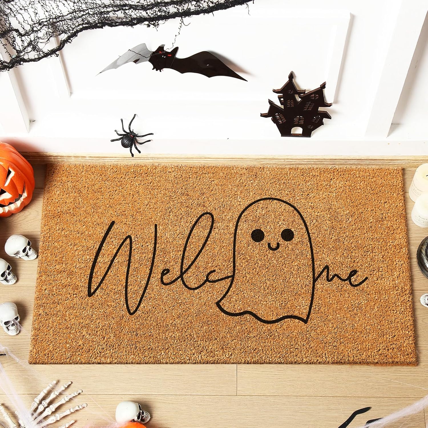 Ceenna Halloween Doormat Coir Ghost Welcome Doormat Funny Halloween Boo Bat Door Mat with Anti-Slip Rubber Non Slip Floor Mat for Indoor Front Door Entrance Decor, 16 x 28 Inch(Ghost Welcome)
