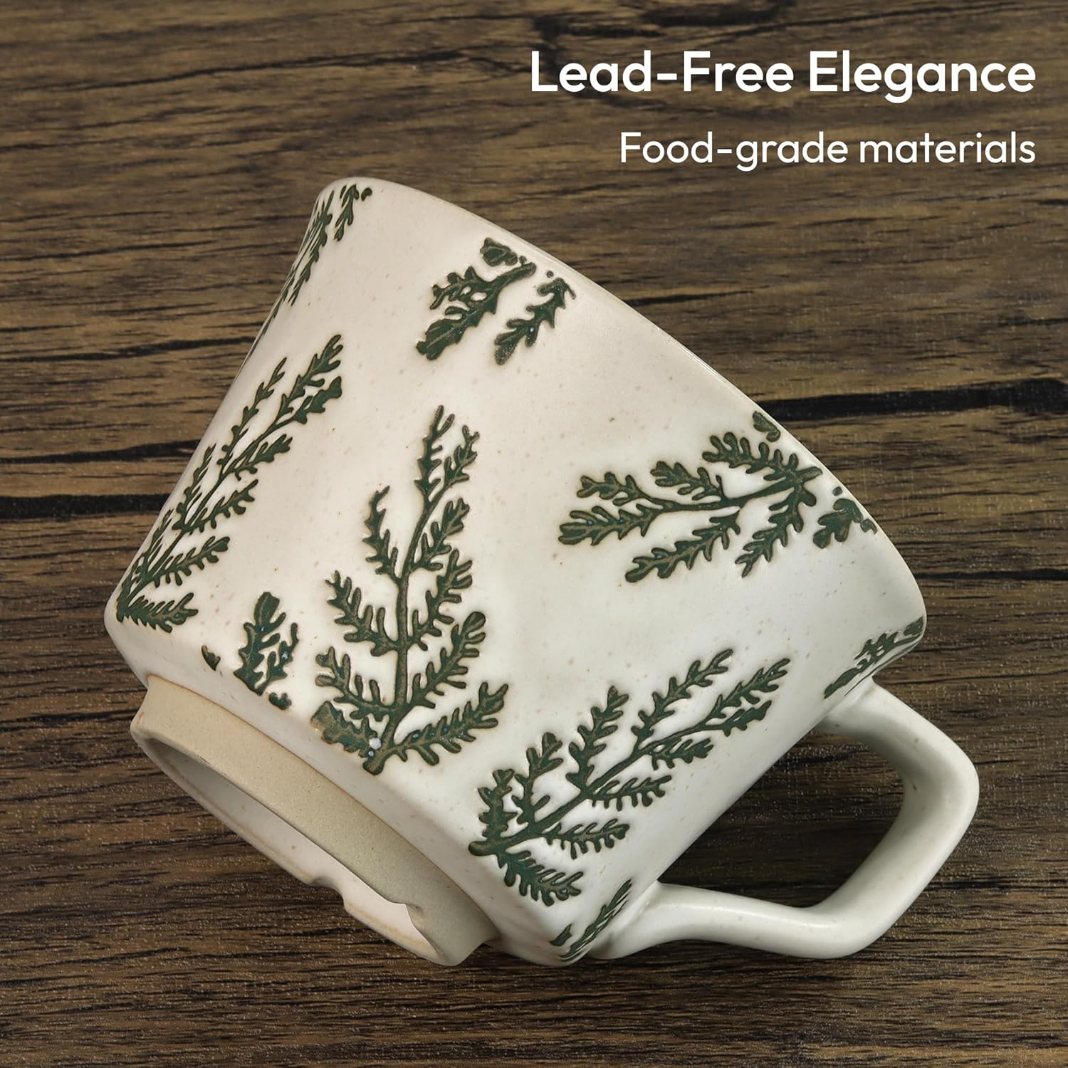 Ceramic Coffee Mug, 12 oz Novelty Unique Teacup with Handle, Stoneware Cup for Tea Mocha Latte Cappuccino Espresso (Leaf)
