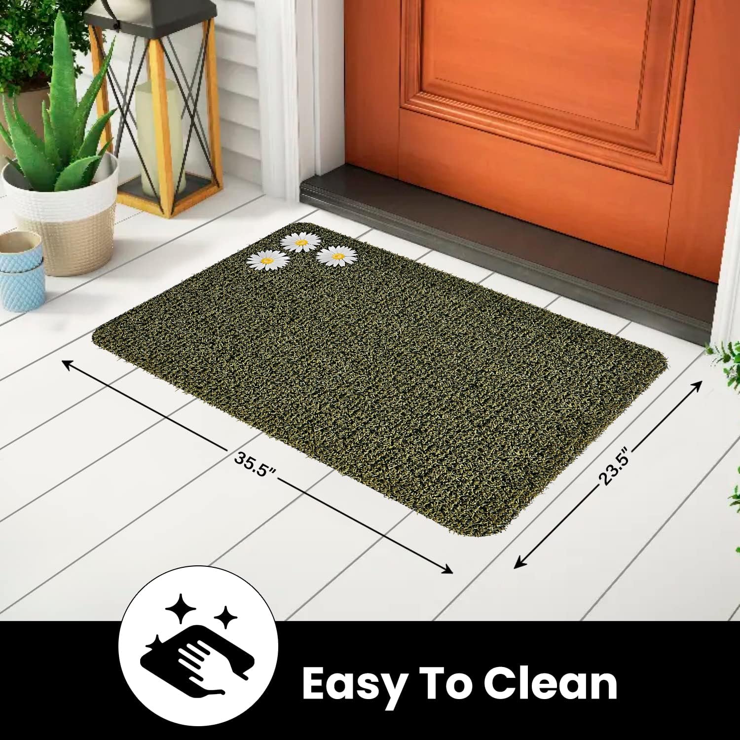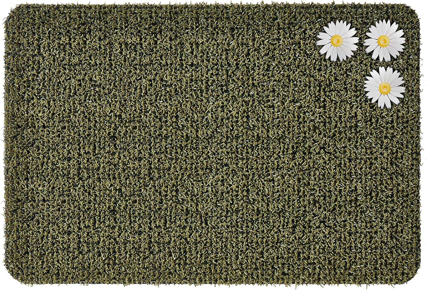 CLEAN MACHINE 10376914 Astroturf Dirt Trapper Doormat, 23.5″ x 35.5″, Daisy Urban Green