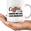 Coffee Makes Me Feel Less Murdery Coffee Lover Gifts For Coworkers Sarcastic Novelty Drinkware Ceramic Mug 11 oz White 11 oz