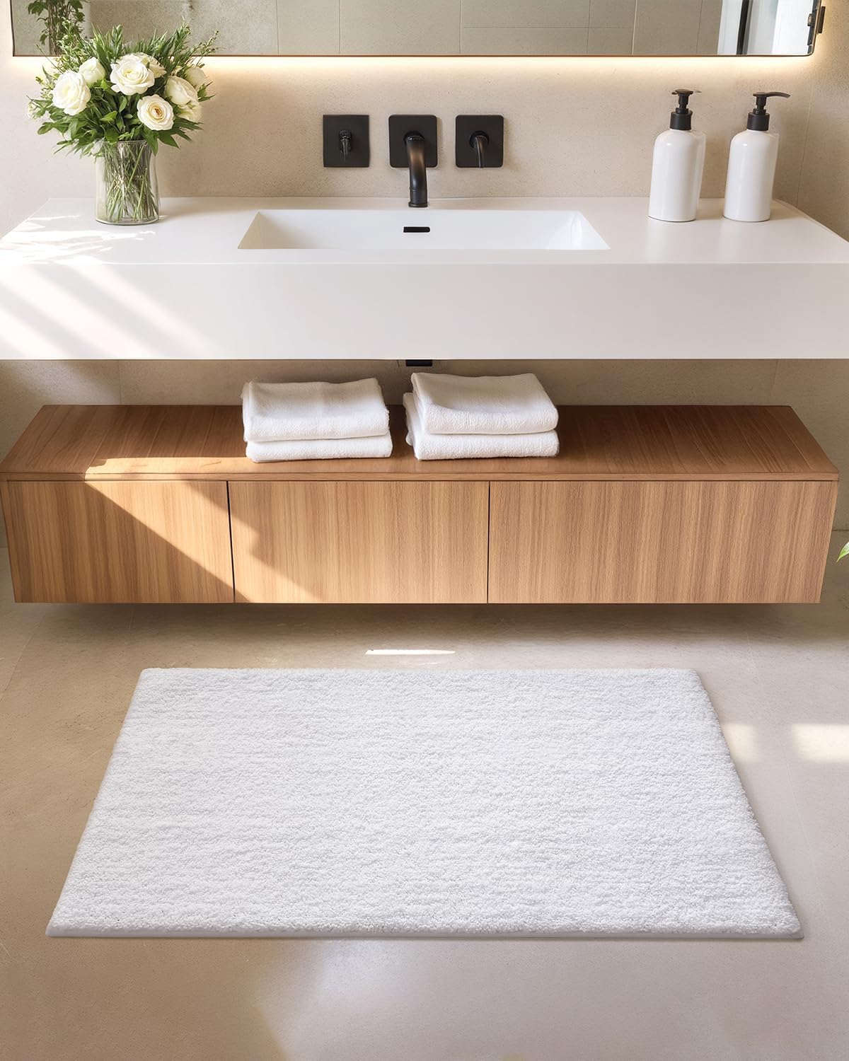 Color&Geometry White Bathroom Rugs, Absorbent, Non Slip, Soft, Washable, Quick Dry, 16″x24″ Small White Bath Mats for Bathroom, Microfiber Shower Mat Bath Rug
