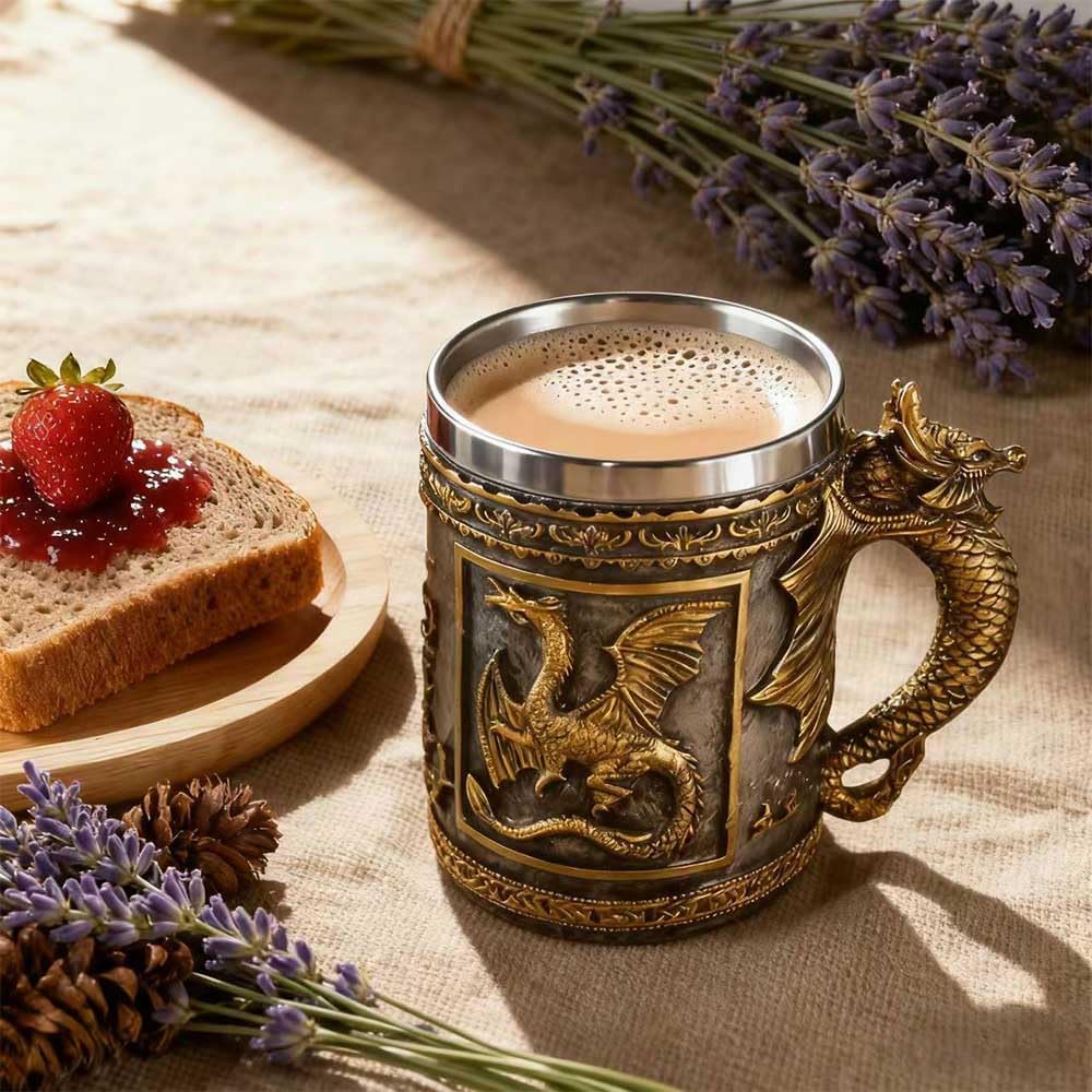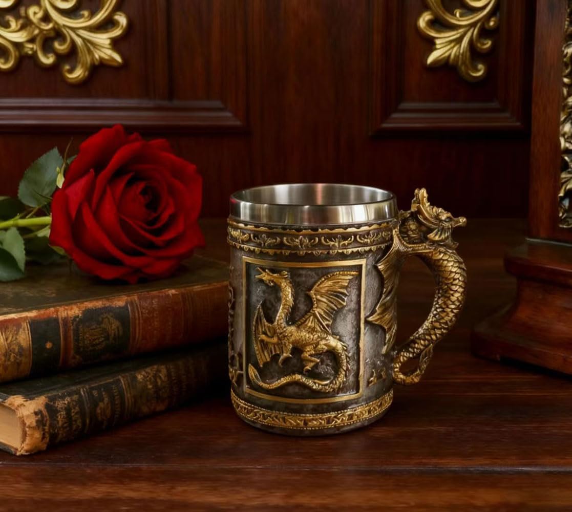 CUZOKOLA Medieval Dungeons and Dragons Cup Gifts Beer Steins Drinking,Dnd Goth Game Dragon Mug-Stainless Steel Novelty Coffee Mug 14oz Friends Cup for Dragon Figurine Collector&Medieval Gifts for Men
