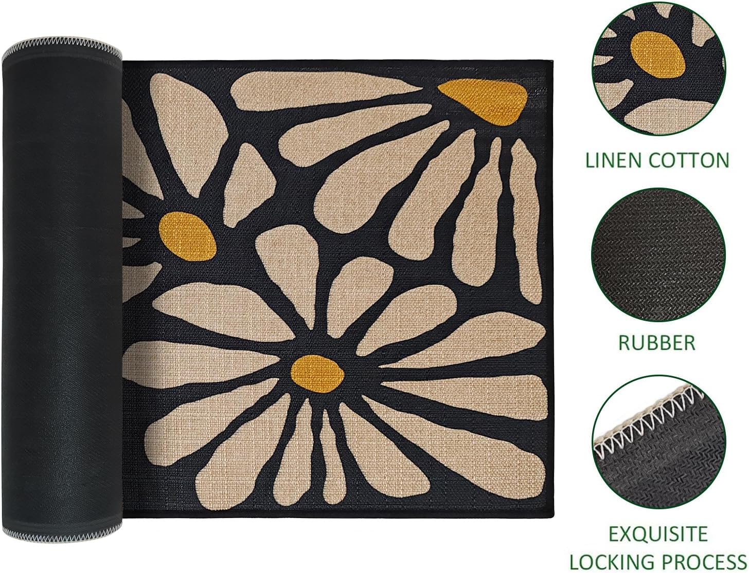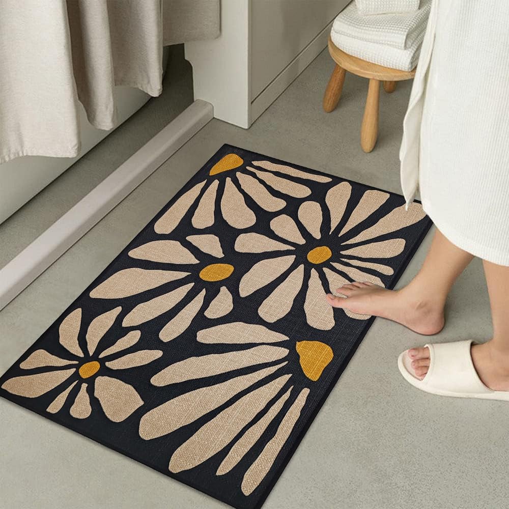Denifeiya Black Floral Door Mat Funny Cartoon Outdoor Indoor Welcome Mats Cute Front Doormat Non Slip Entrance Rugs for Inside Outside Entry Porch Bathroom Mats 17″ x 30″ Easy to Clean