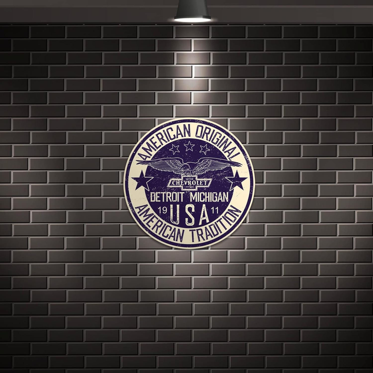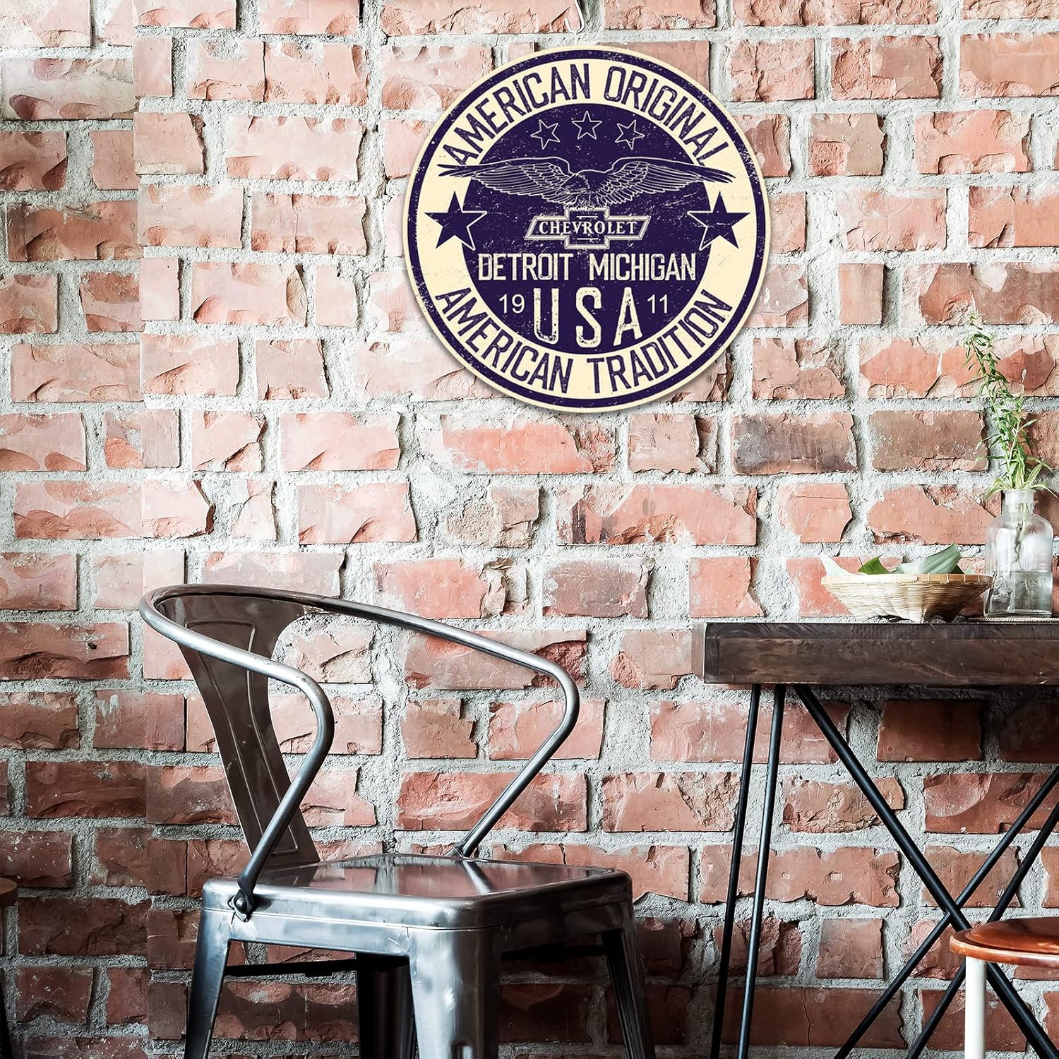 Desperate Enterprises American Tradition – Chevy Round Aluminum Sign – Nostalgic Vintage Metal Wall Decor – Made in USA