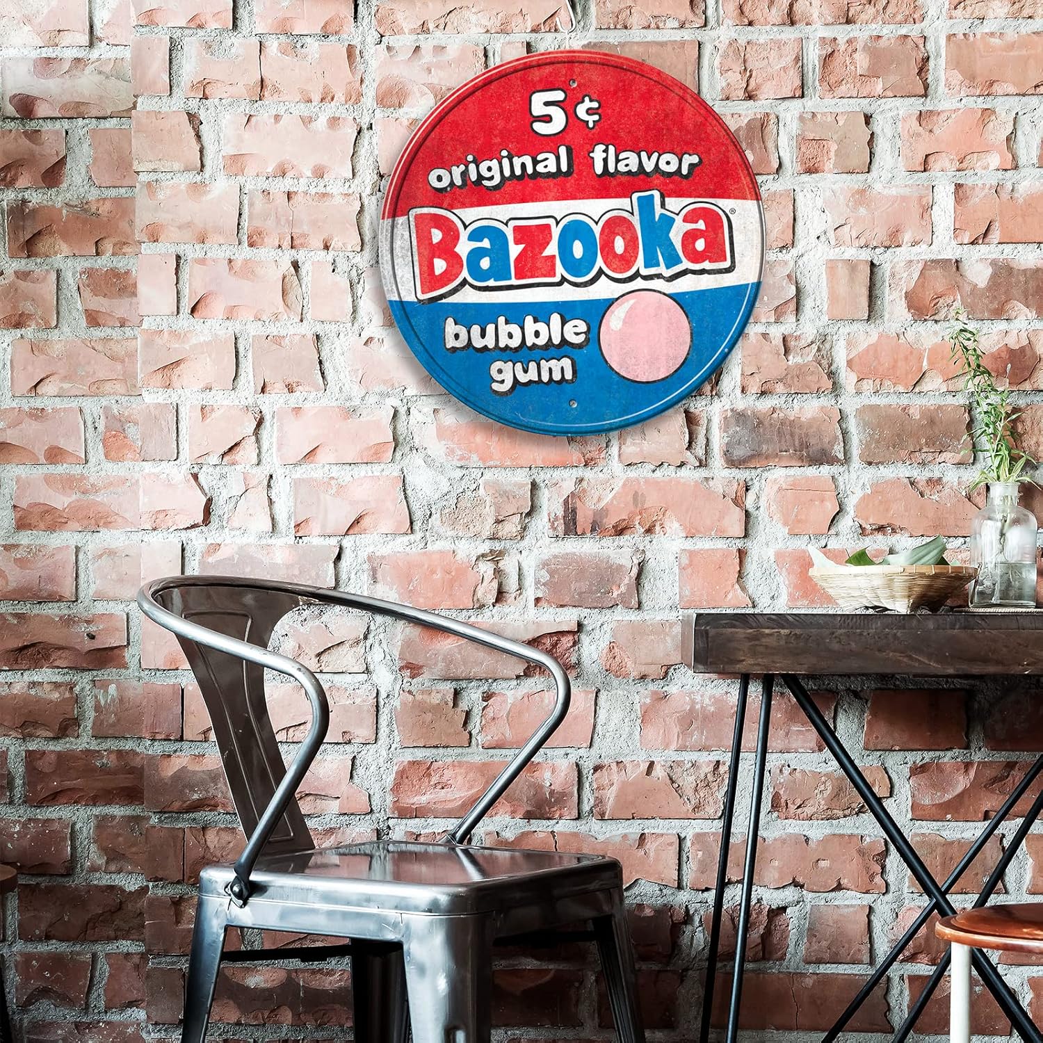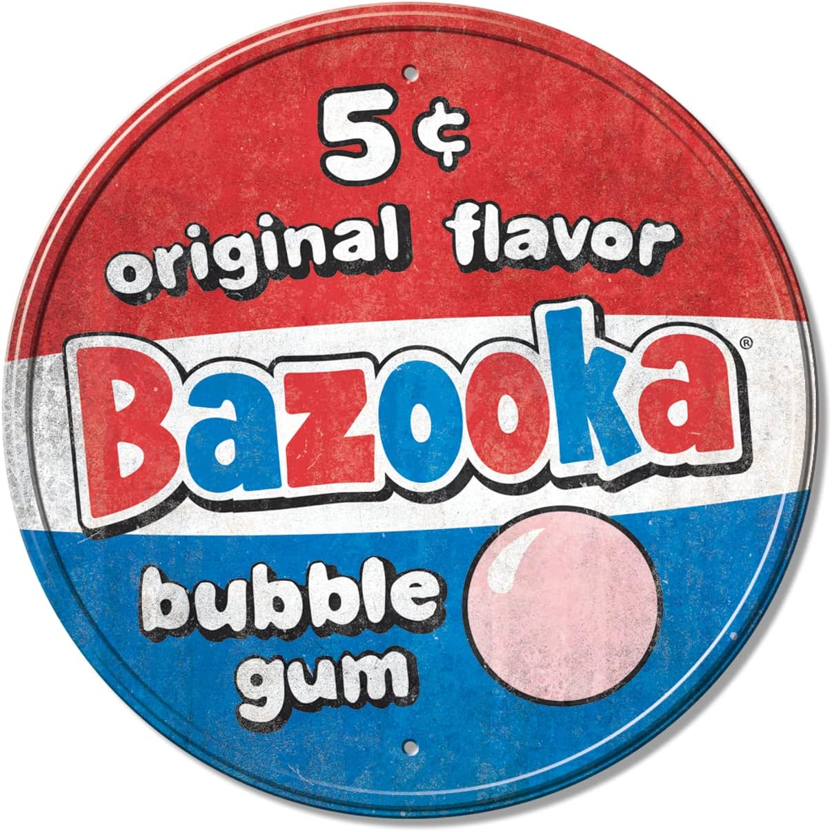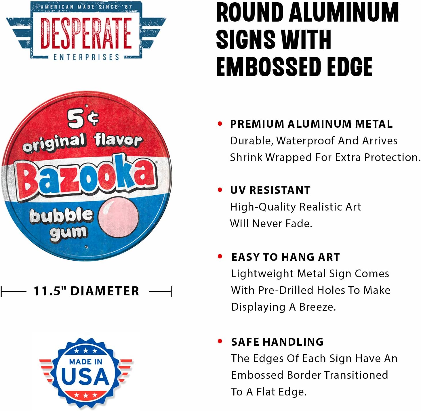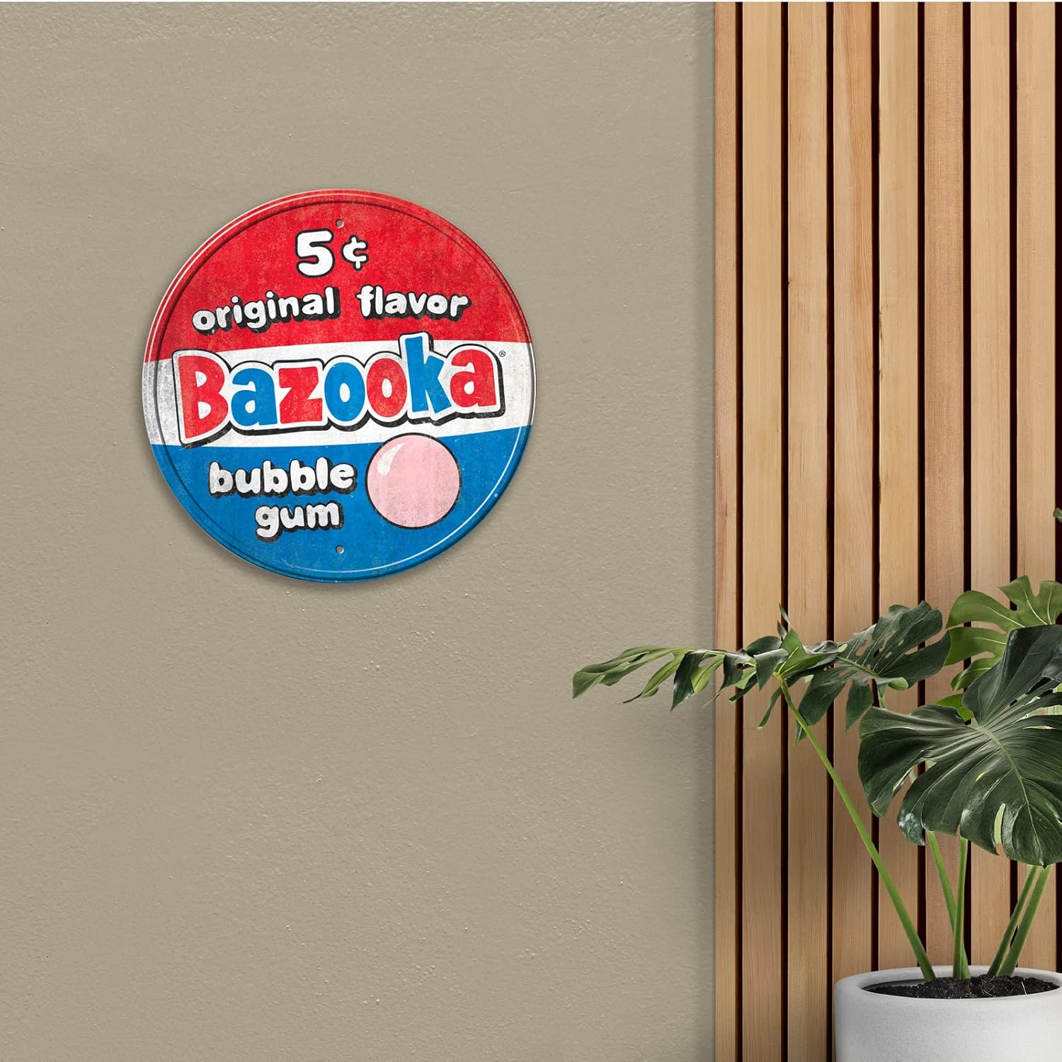 Desperate Enterprises Bazooka 5 Cents Round Aluminum Sign with Embossed Edge – Nostalgic Vintage Metal Wall Decor – Made in USA