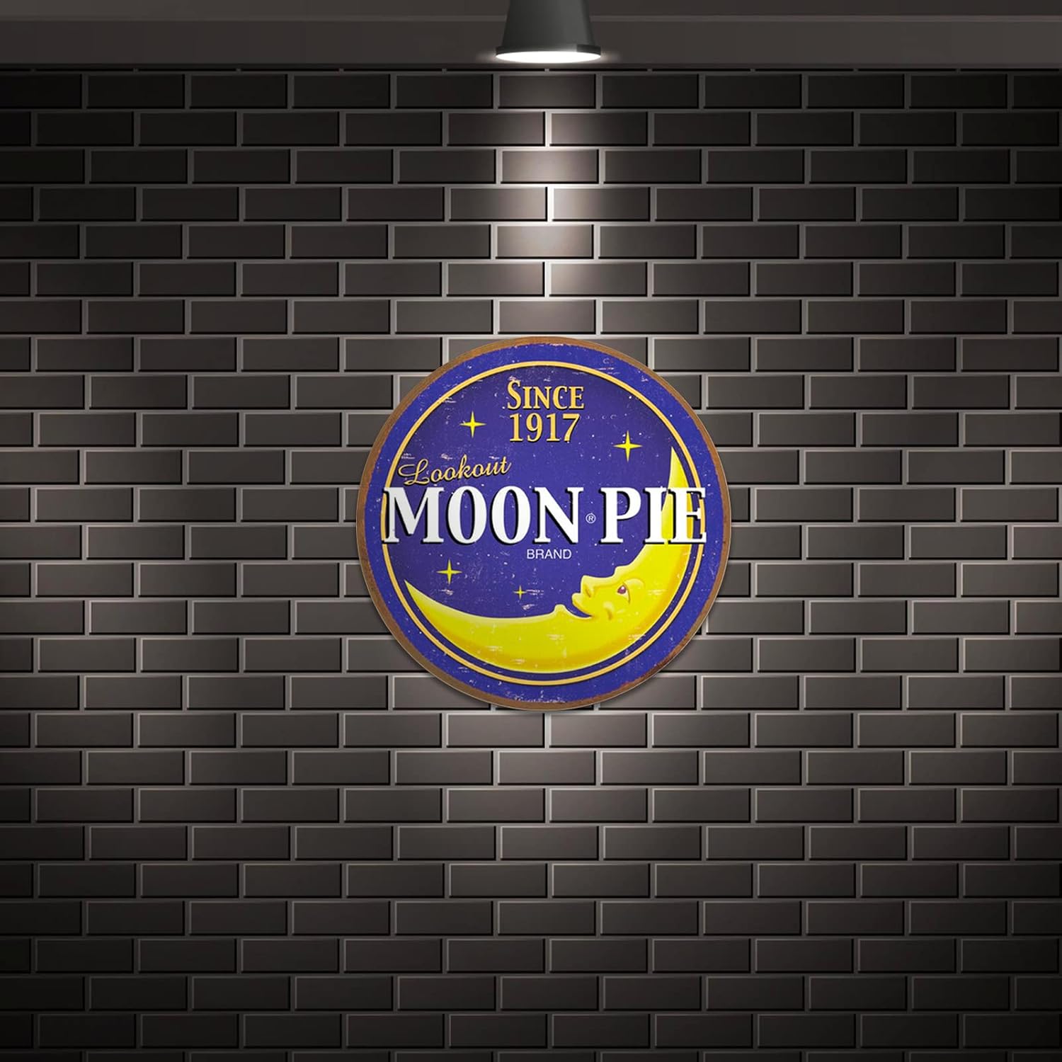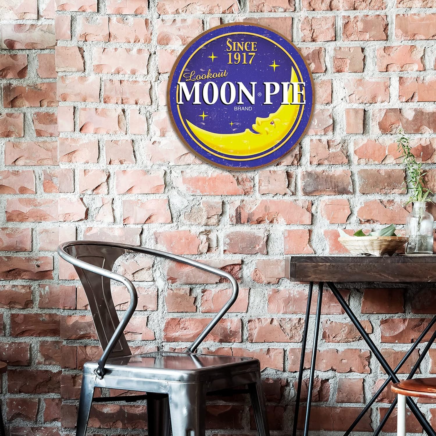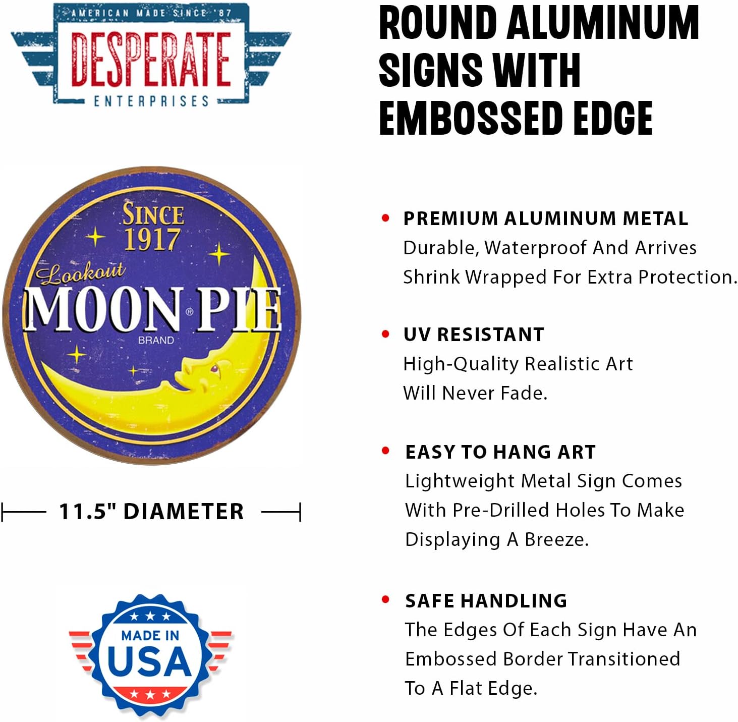 Desperate Enterprises Moon Pie Round Logo Aluminum Sign with Embossed Edge – Nostalgic Vintage Metal Wall D??cor – Made in USA