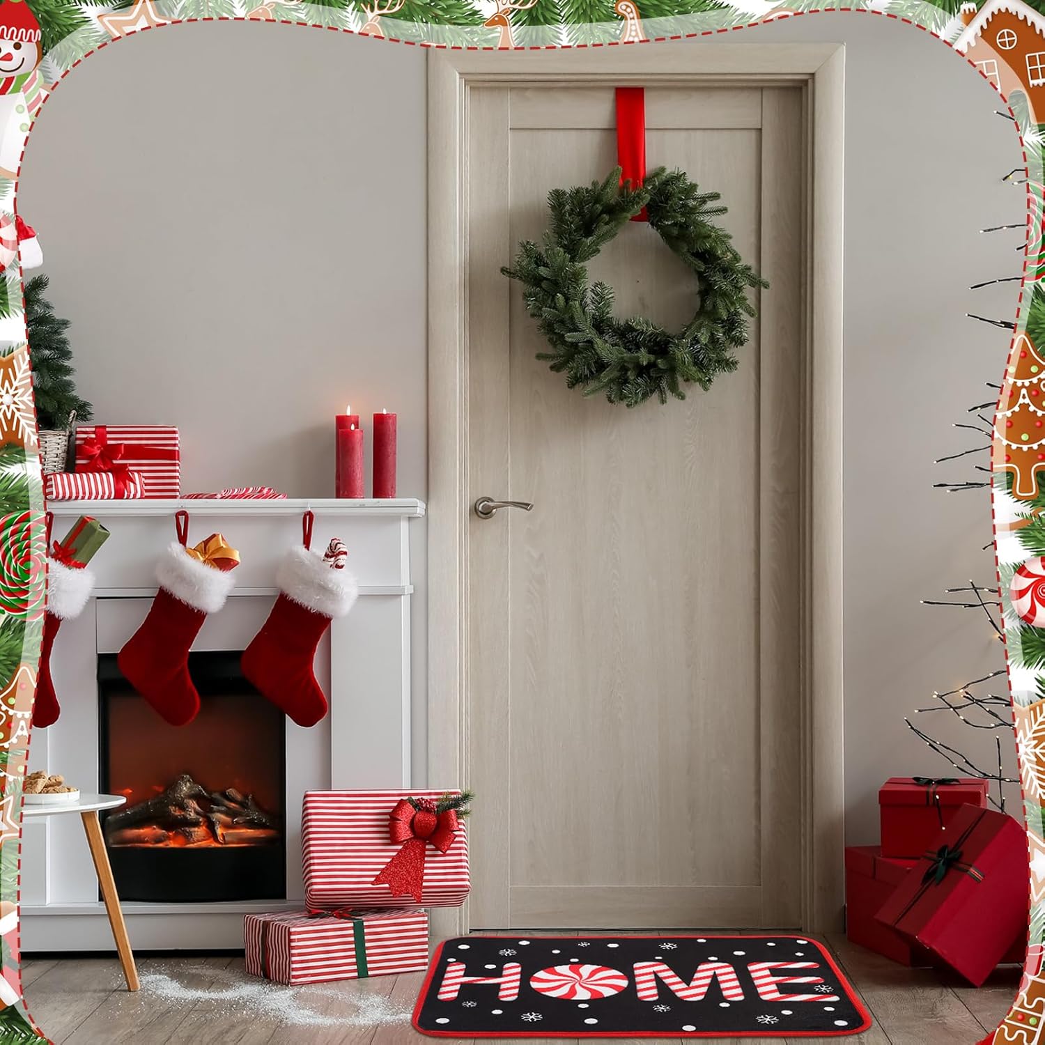 Features: Quick to clean: Easy to clean dirt on this Christmas outdoor doormat with a damp washing cloth, or wash with a garden hose, this welcome doormat is ideal for bedroom, back door, porch door, laundry, living room with crowed traffic around, which will be convenient for you. Christmas patterns: Our Xmas welcome front door mat is designed with Christmas theme images, such as gnome, tree, snowflakes and more, these Christmas theme images are beautiful, will increase the Christmas festival atmosphere. Specifications: Material: polyester, rubber Color: as shown Size: about 23.62 x 15.75 inch/ 60 x 40 cm Package includes: 4 x Christmas doormats Notes: Manual measurement, please allow slight errors on size. The color may exist a slight difference due to different screen displays. The words printed on the product and mentioned above are not applied as brands, just for display.