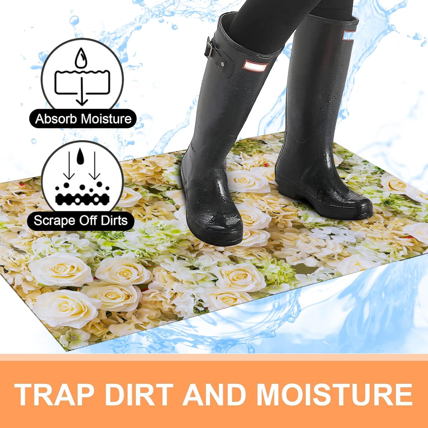 Add style to your space with this doormat. The novel design perfectly complements any floor in your home, including entryways, garages, outdoor spaces, and more, welcoming guests and pets into your home. Printed with premium color pigment dyes, these mats are fade-resistant, weather-resistant, and easily remove dirt from shoes. The innovative printing process allows the doormat’s colors and patterns to stay vibrant through the seasons. Each doormat measures 17″ x 29.5″. The sturdy, non-slip PVC backing helps keep the mat firmly in place. The mats are sturdy, pet-friendly, and stylish. Surface: 100% natural non-woven; Backing: 100% PVC. Easy to clean; just brush or shake.