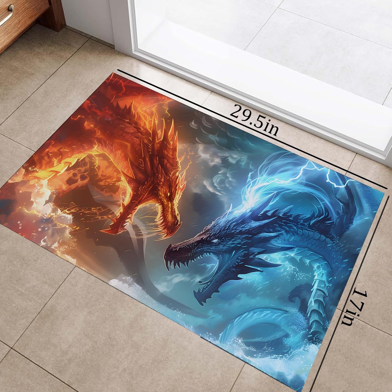 Dual Dragon Indoor Doormat, Non-Woven Fabrics Non Slip Floor Mat 17×29.5 in Area Rug Quick Absorbent Entrance Rug Front Door Mat, Welcome Mats Entryway Rug Doormats for Kitchen Home Patio Bedroom