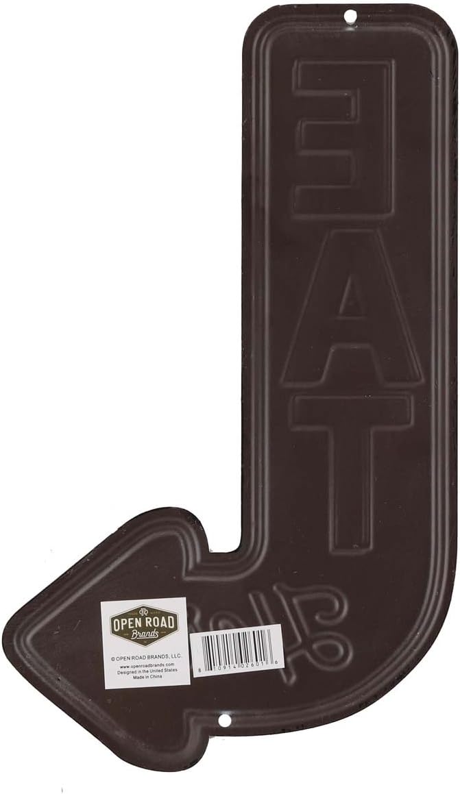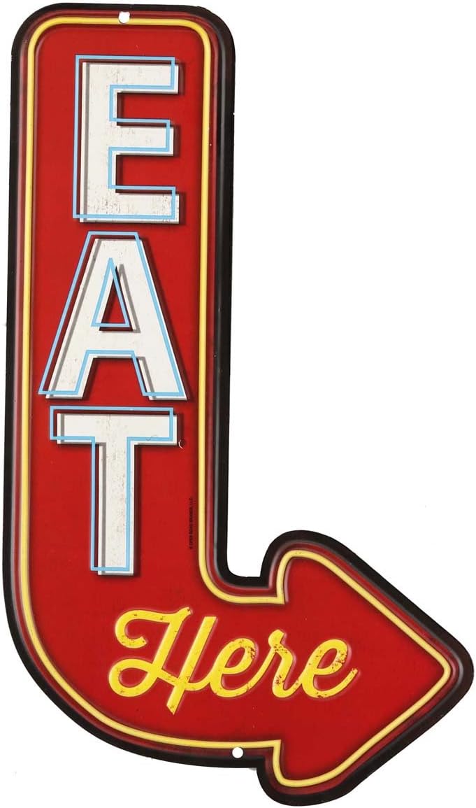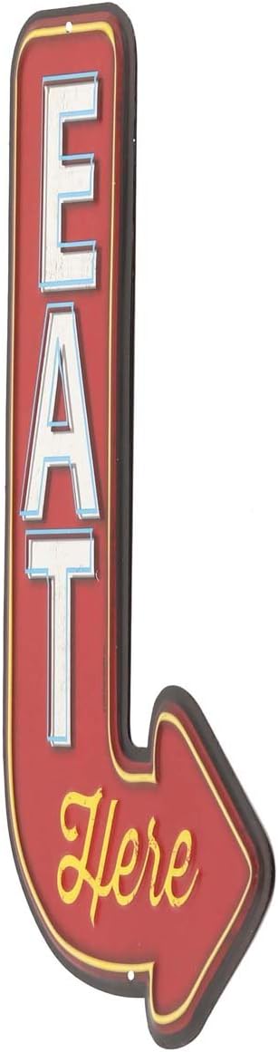 Eat Here Arrow Embossed Metal Sign – Vintage Diner Sign for Kitchen or Man Cave