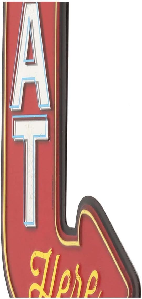 Be the first to review “Eat Here Arrow Embossed Metal Sign – Vintage Diner Sign for Kitchen or Man Cave” Cancel reply