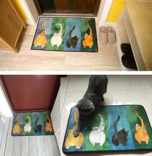 EatingBiting 24″ x 16″ Lucky Cat Non-Slip Carpet Floor Mats for Home Four Cute Cats’ Tails Pattern Door Rug, Bathroom Living Room Kicthen Mats for Home