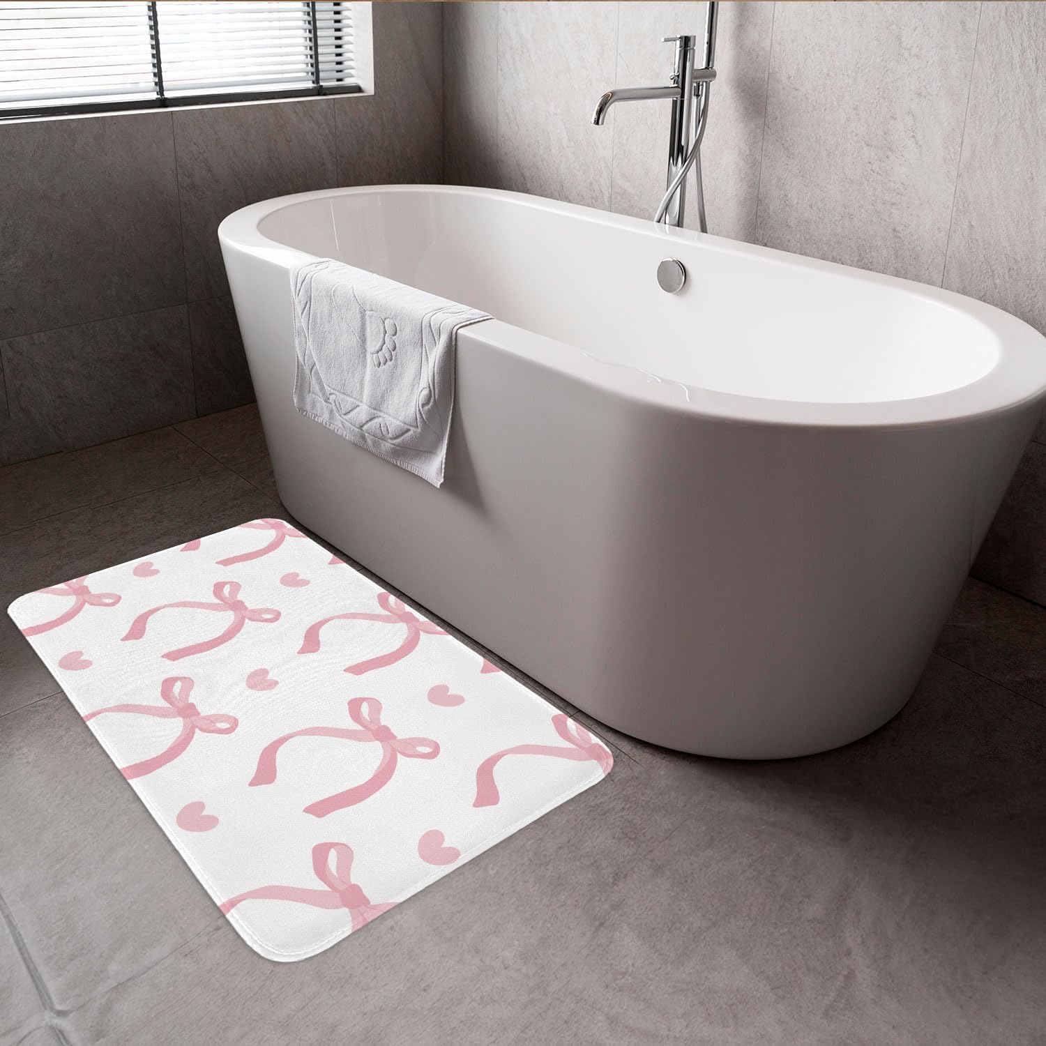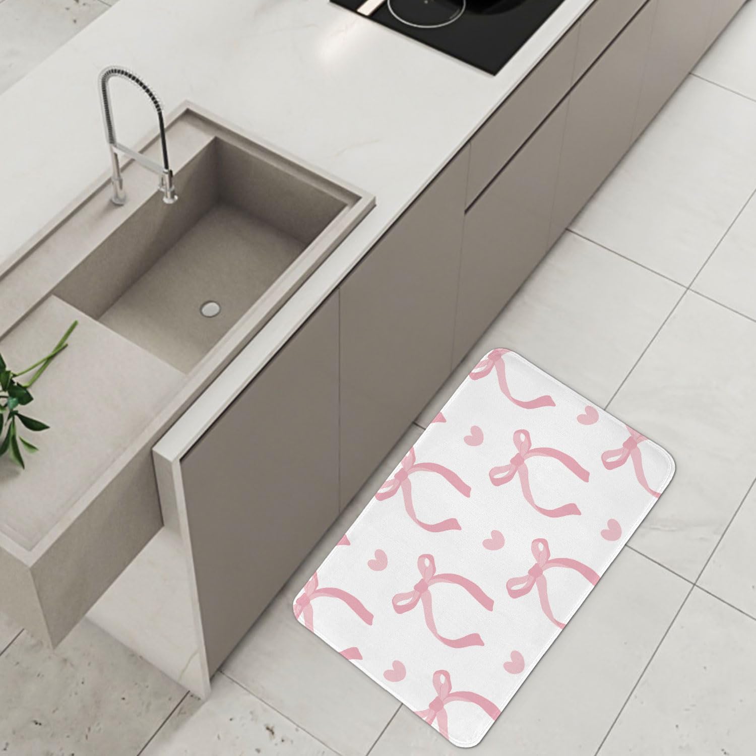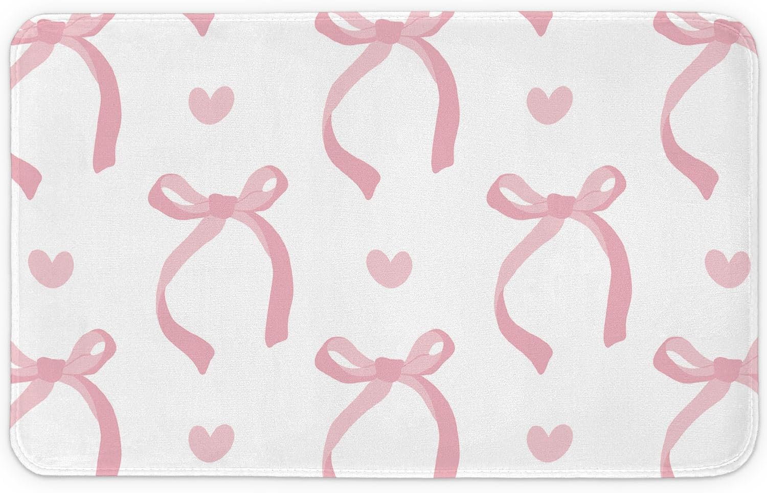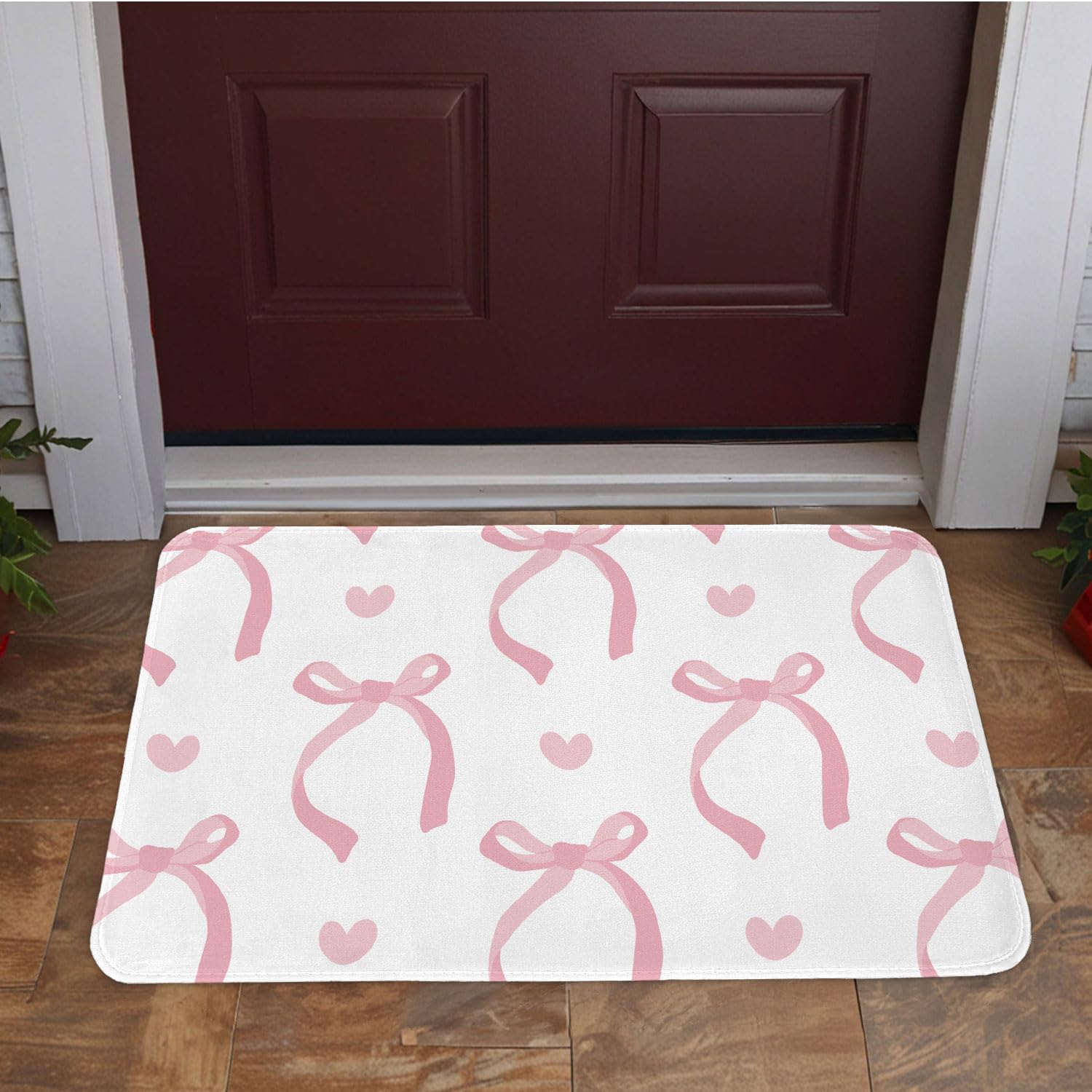 ETYZE Cute Pink Bow Welcome Mat Floor Mats Indoor Outdoor Doormat, Coquette Bath Mat Front Door Preppy Bedroom Kitchen Mats Girly Room Decor, Gifts for Women Girls College Dorm, 28 x 18 Inch