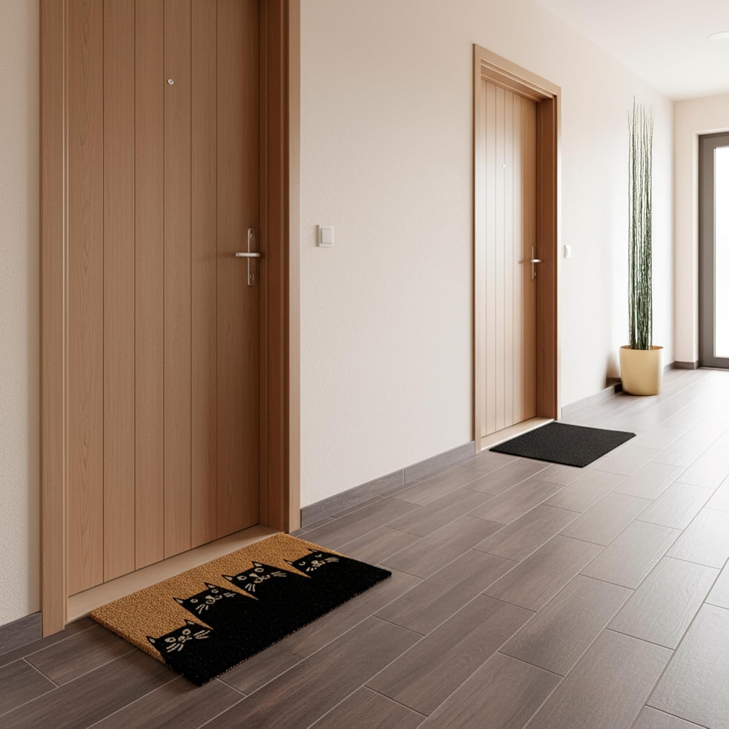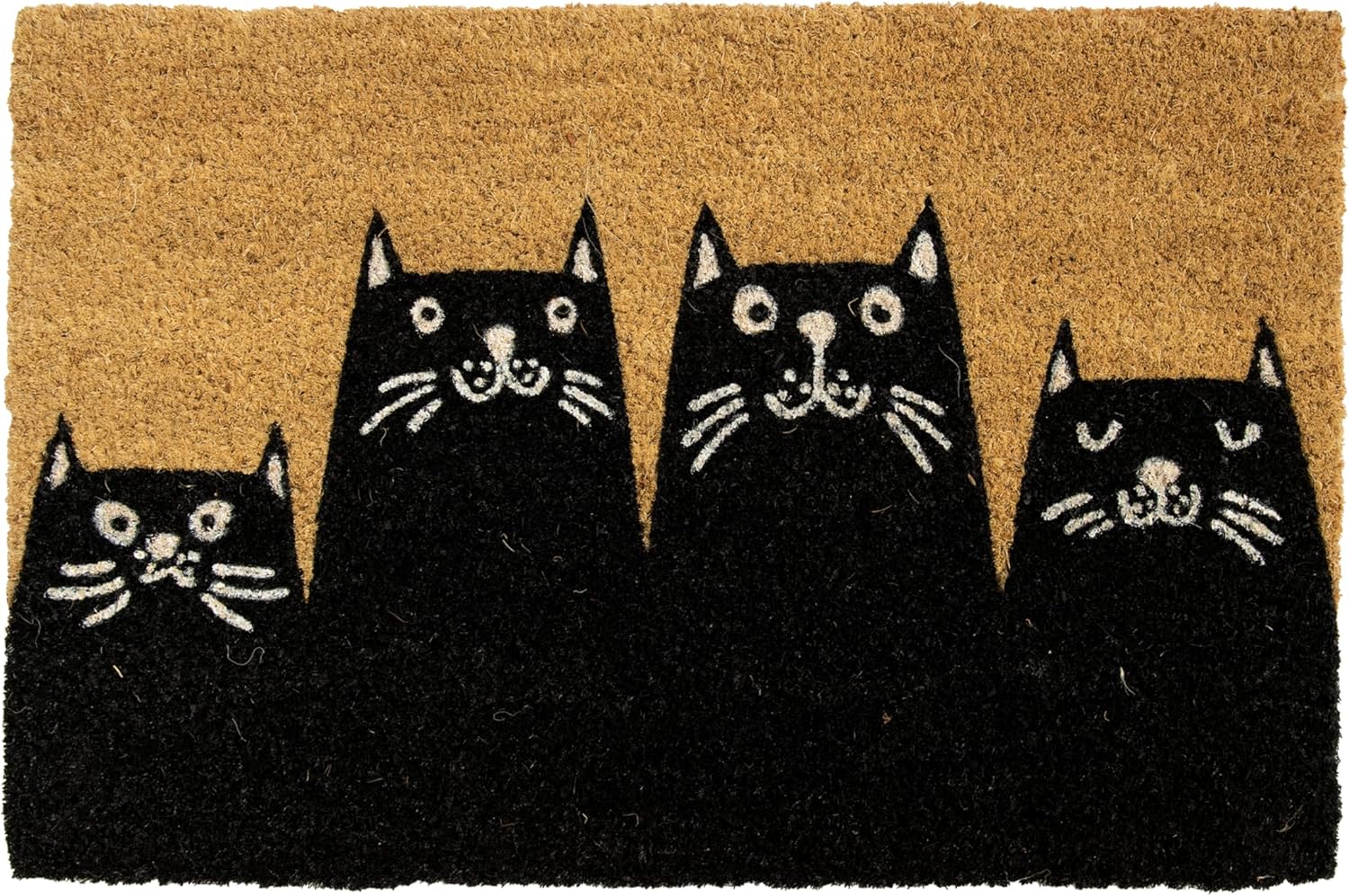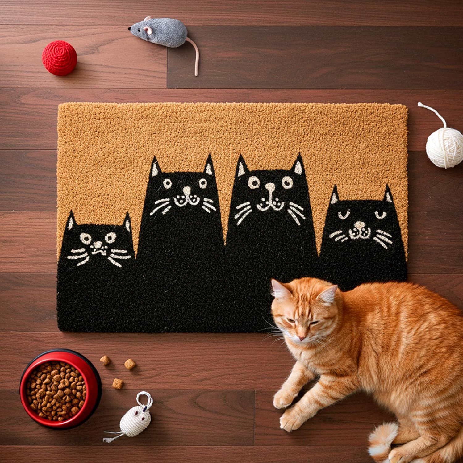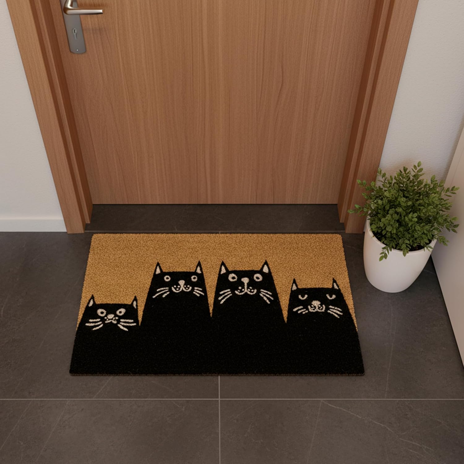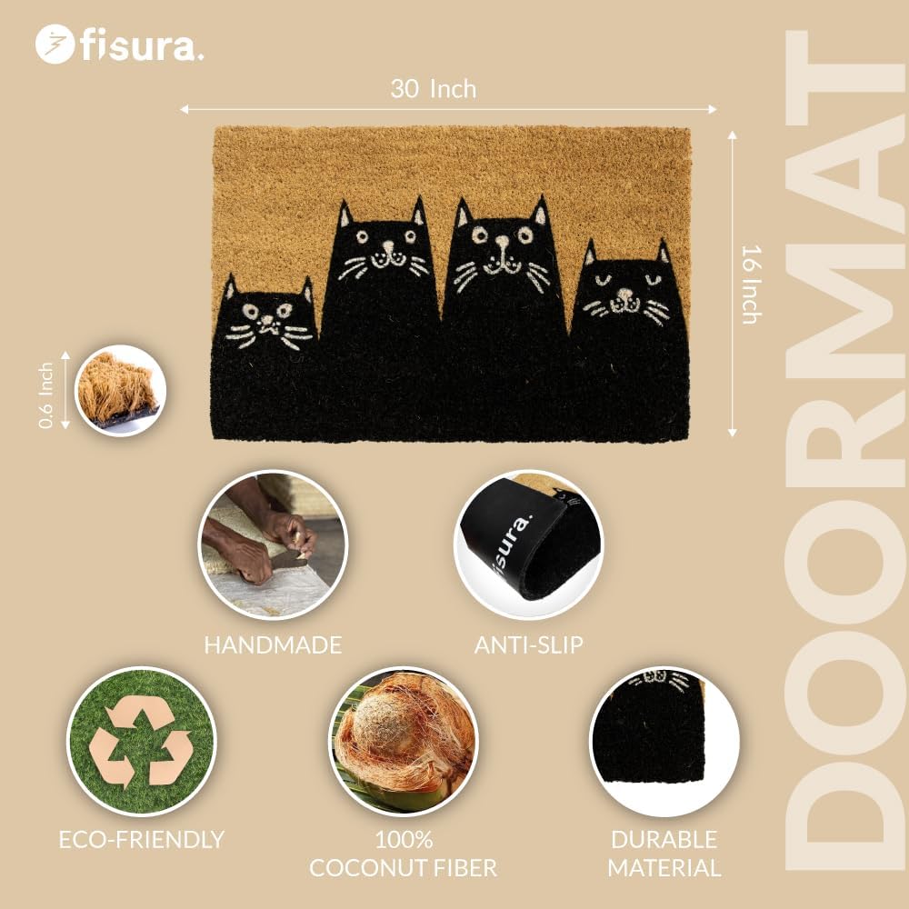 Fisura ?C Doormat for Outdoor Entrance with Cats Design, Welcome Mat for Front Door Made of Coconut Fiber with Non-Slip PVC Base, Hand-Painted, 30 x 18 Inches.