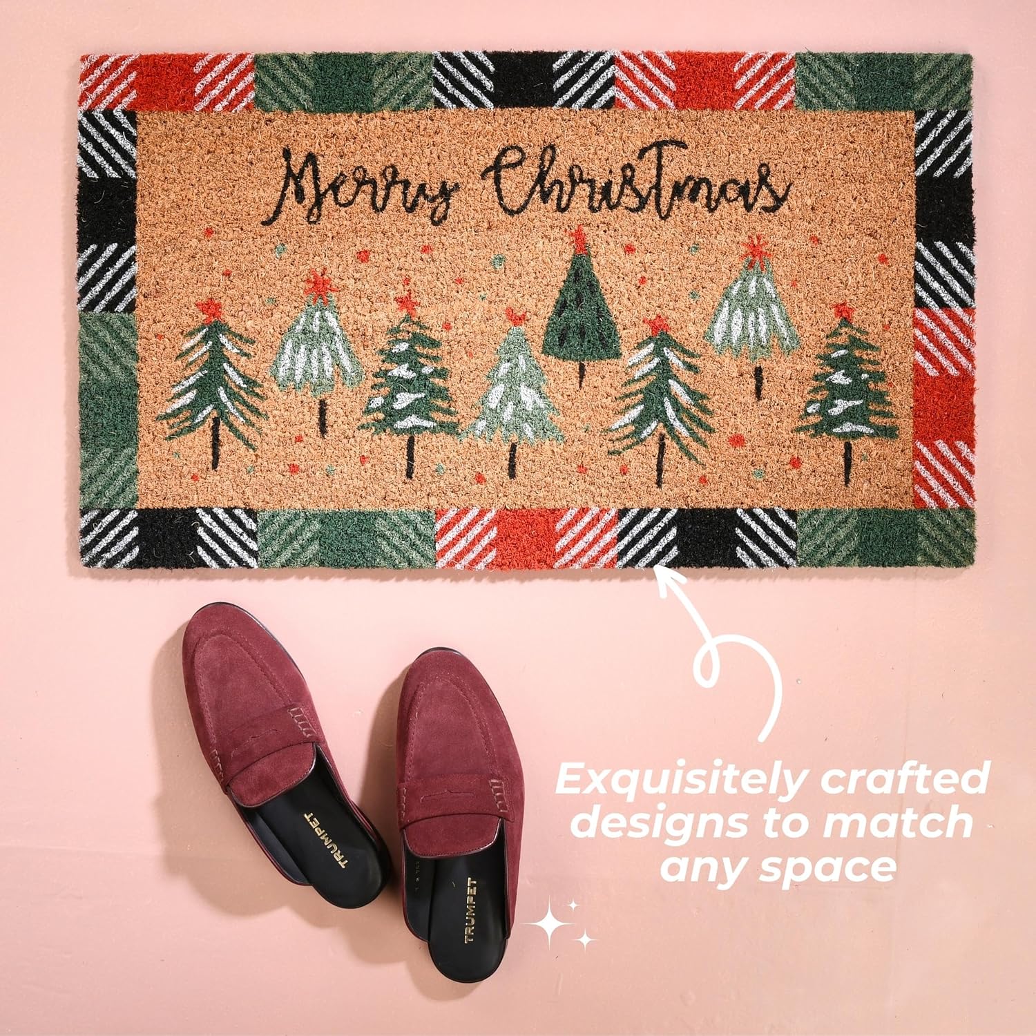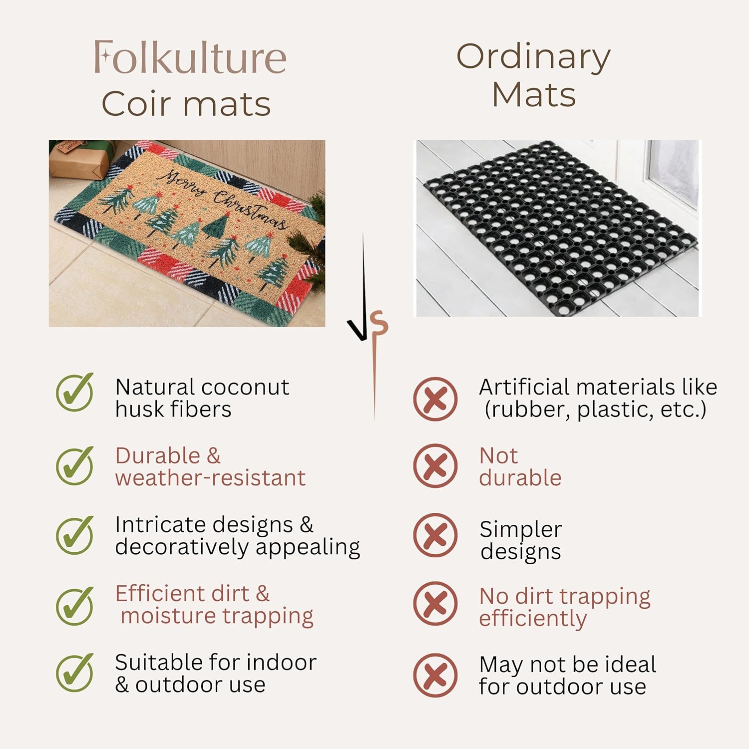 Folkulture Christmas Door Mat Outdoor, Eco Friendly Christmas Door Mats for Front Door, 28 X 16 Inch Welcome Matt or Doormat for Home Entrance, Durable & Anti Slip Coir Door Mats – Merry Christmas