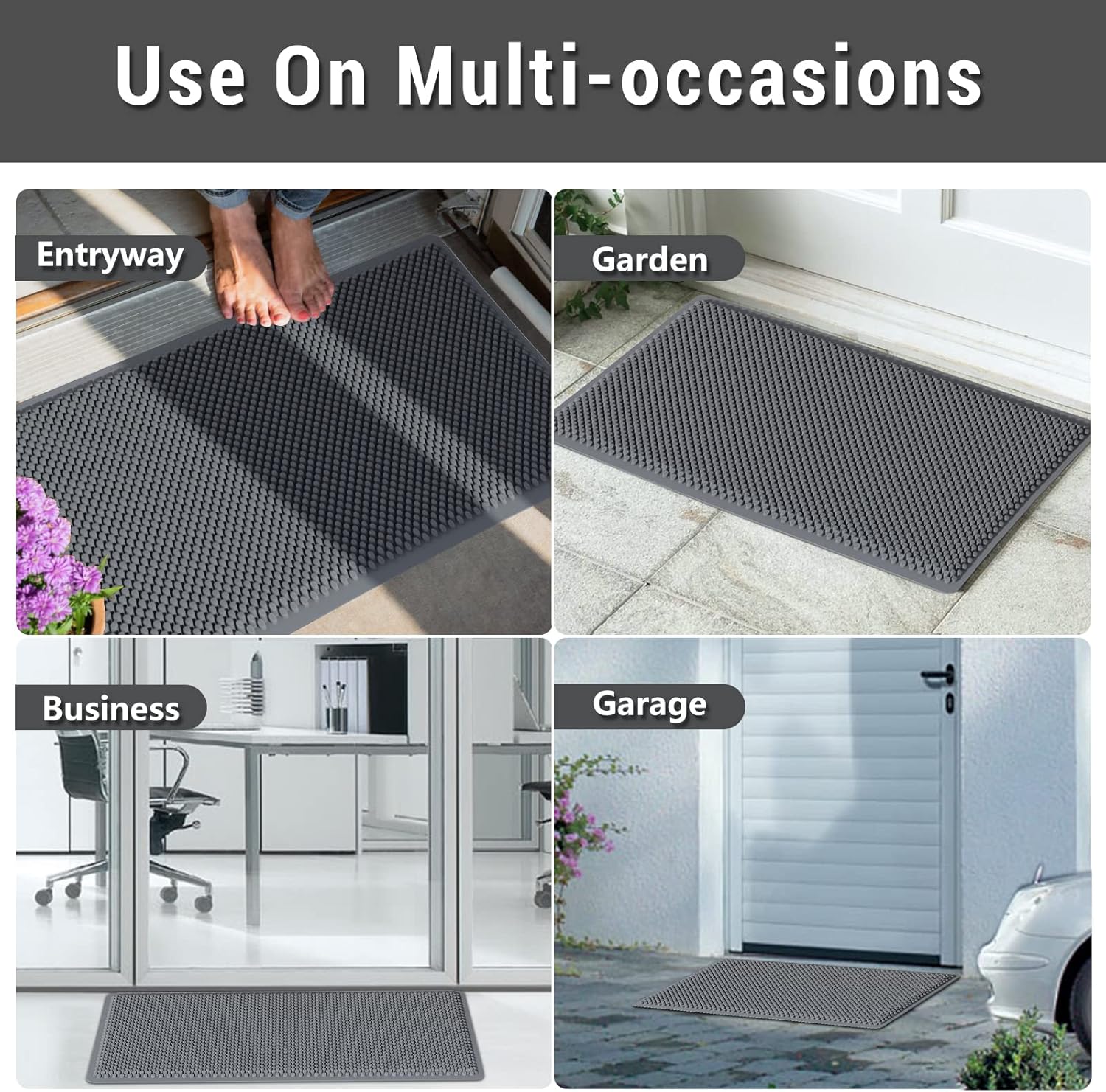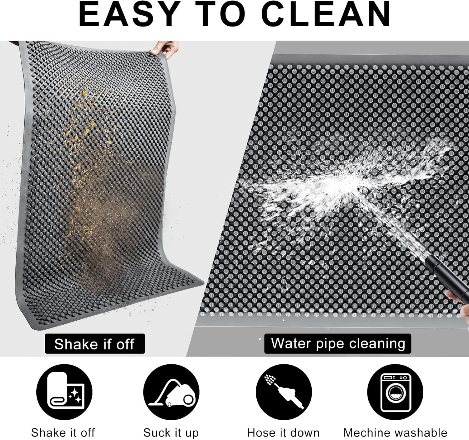 Trap all Dirt & Debris-This silicone door mat with thousands of bumps that can rub to the more hidden corners of the sole and increase the friction force to clean the sole with less effort and more thoroughness. They are great at trapping dirt, debris, grass, mud, and more.
