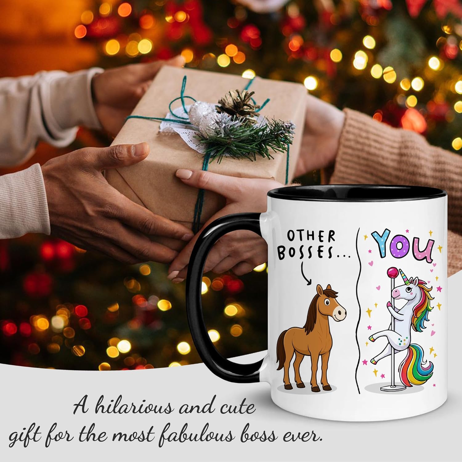 Funny Boss Coffee Mug Unique Mug for Boss, Cute Holiday Coffee Cup for Bosses, Humorous Christmas Office Present, Best Funny Gifts for My Boss