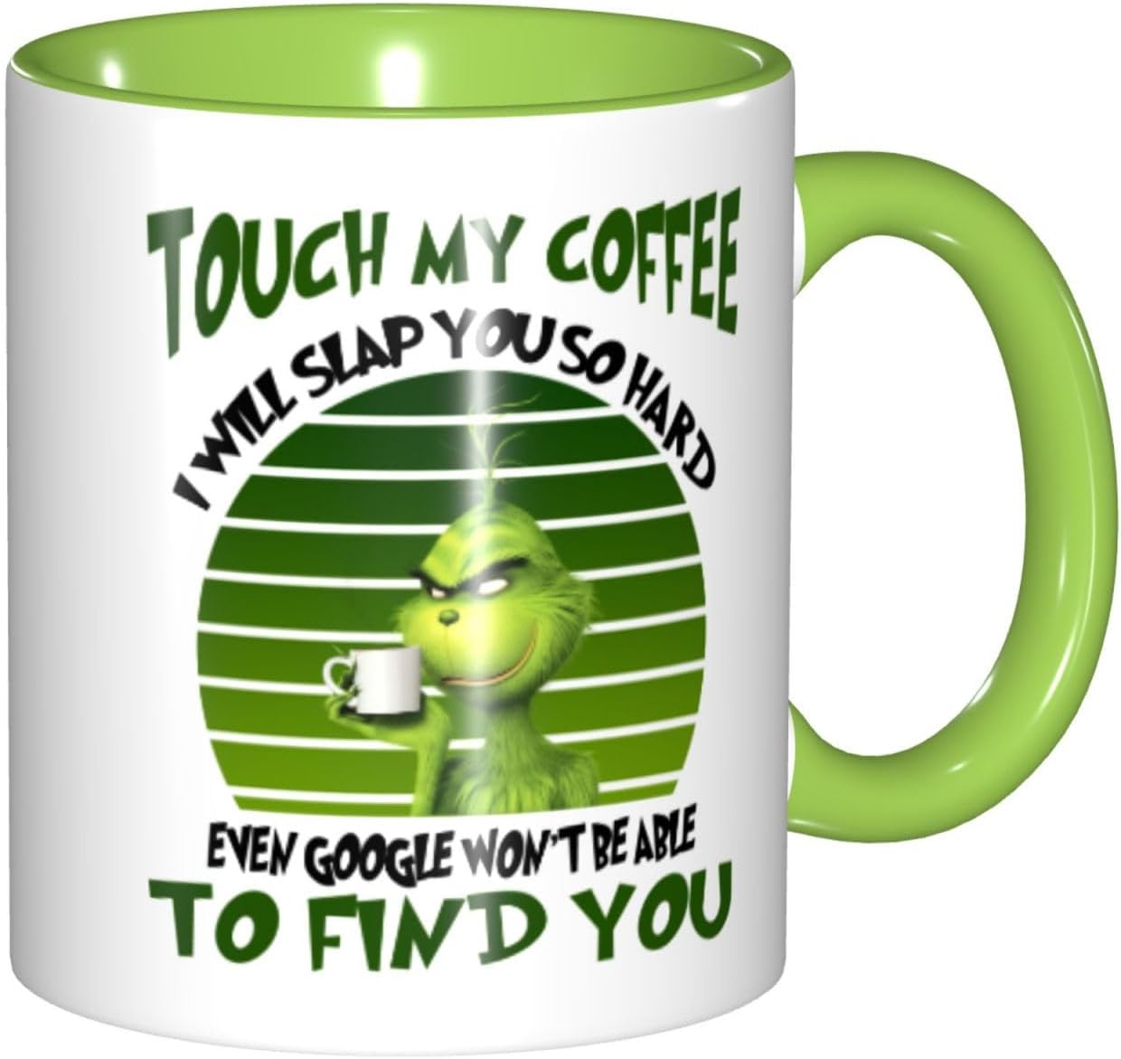 Funny Coffee Mug, Touch My Coffee I Will Slap You So Hard. Family, Birthday, Christmas, Cute, Lovely Best Birthday Present, And Handle Green 11Oz Mug