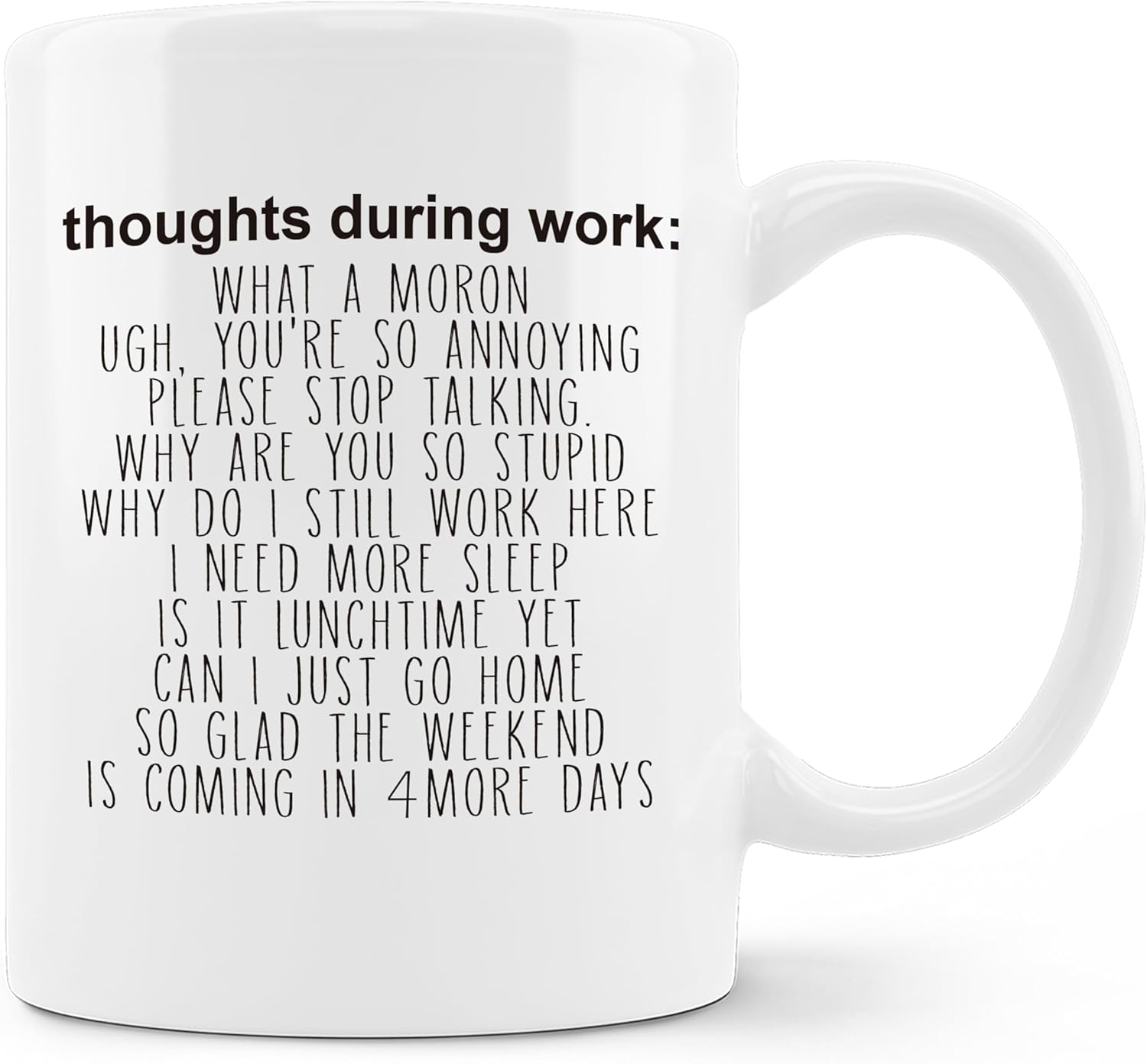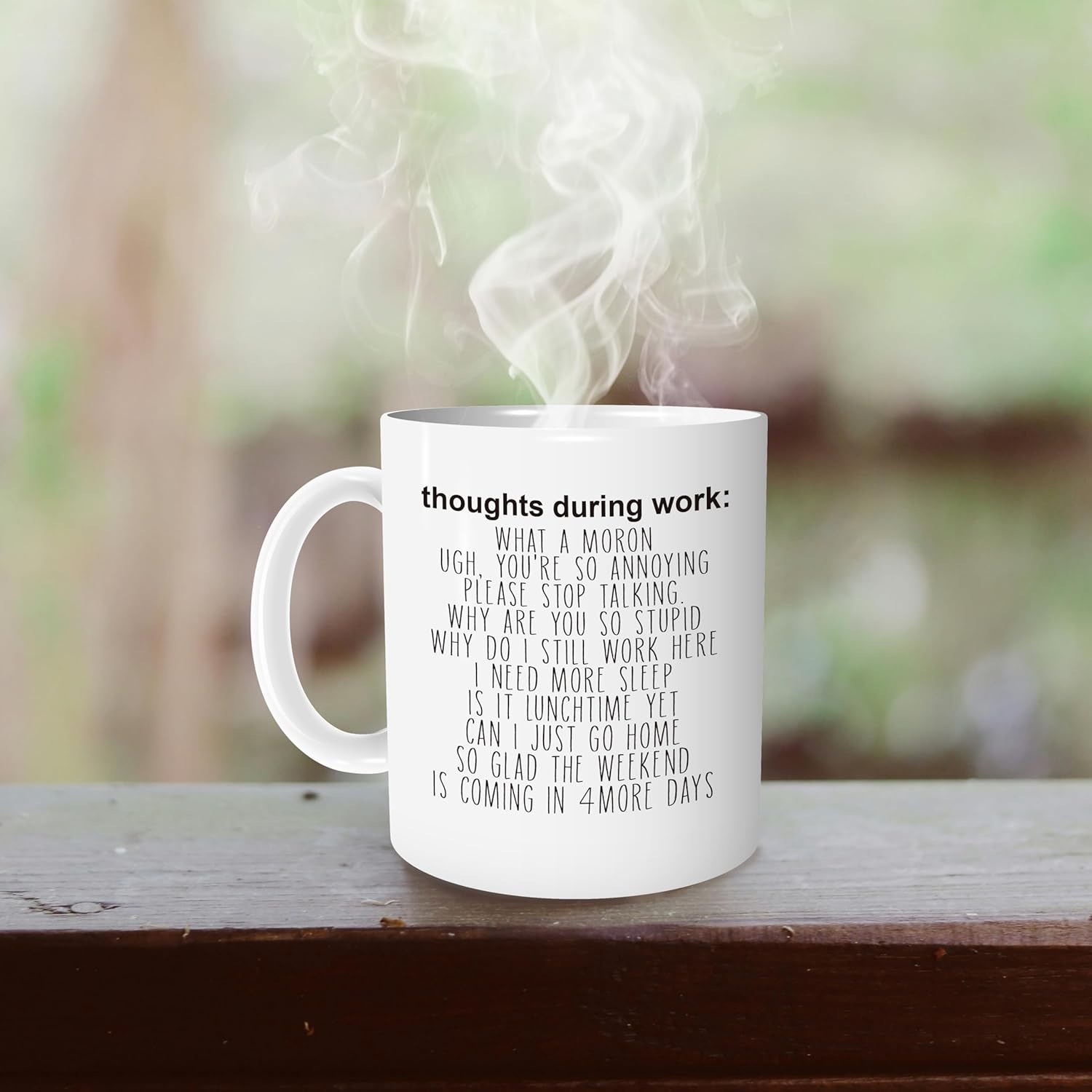 Funny Mugs for Coworkers – Funny Work Mugs for the Office, Funny Sarcastic Gifts for Women Men Coworkers Friends, Thoughts During Work Ceramic Coffee Mug 11oz White