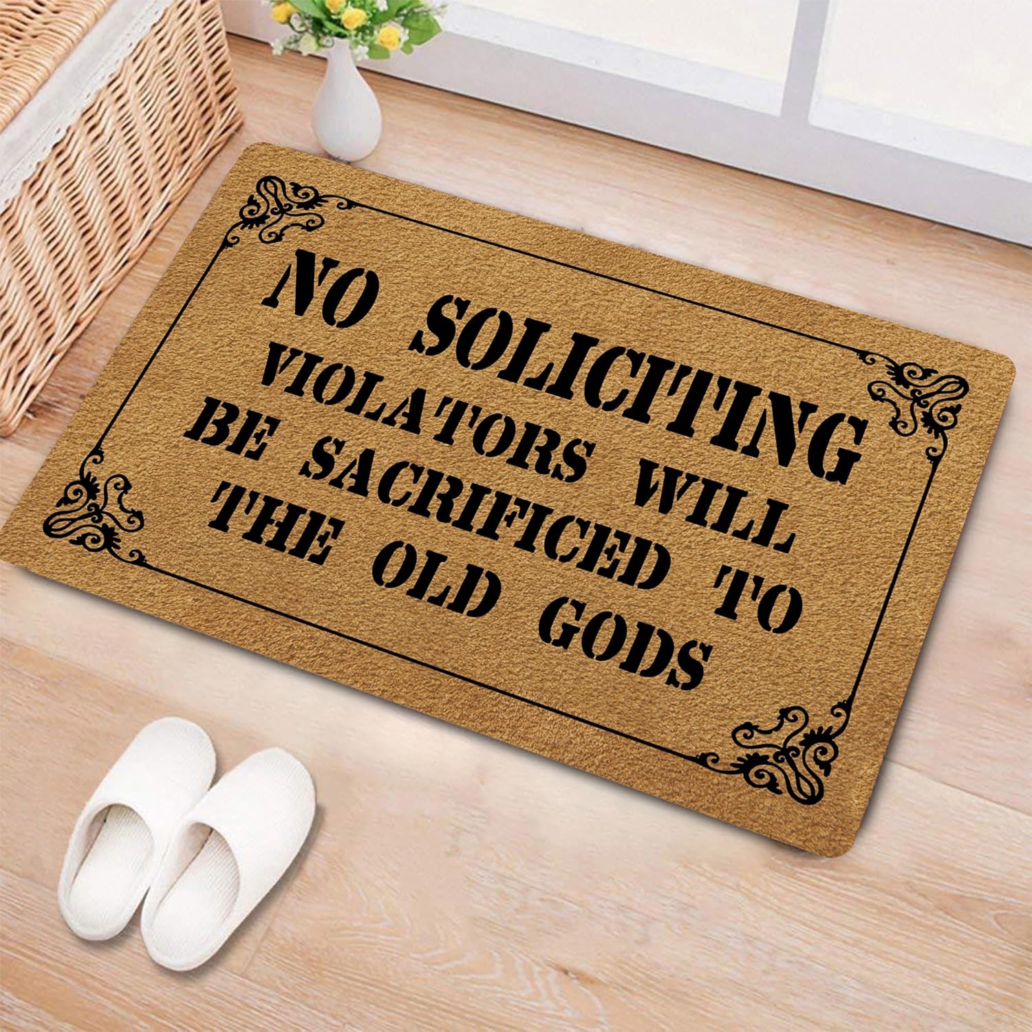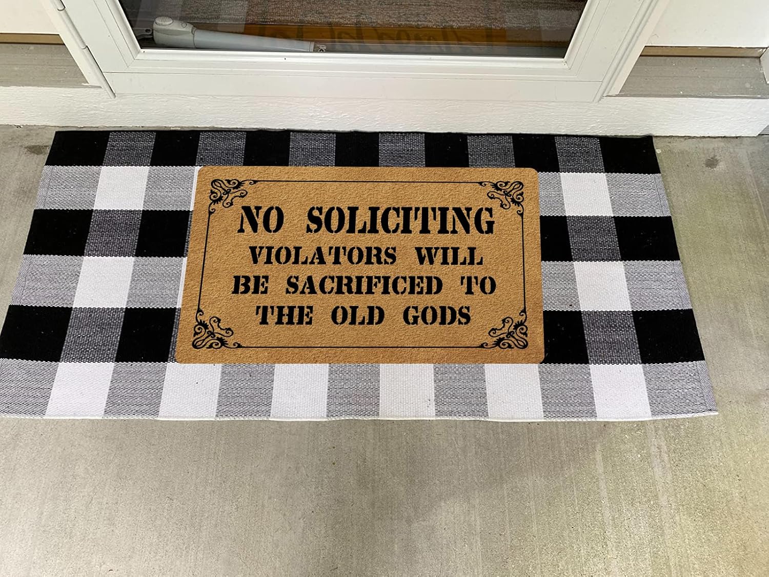 Funny Welcome Doormat for Home Decor (29.5 x17.7 inch) Gift Mat with Anti-Slip Rubber Back Funny Rugs Personalized Doormat for Entrance Way (No Soliciting Violators Will Be Sacrificed to The Old Gods)