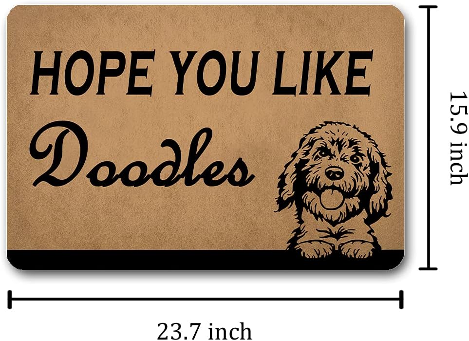 Funny Welcome Doormat House Warming Gift Mat 15.9″(W) x 23.7″(L)Hope You Like Doodles Door Mat Dog Mat Funny Doodle Doormat for Entrance Way Hello Monogram Mat for Front Door Mat No Slip Kitchen Rugs