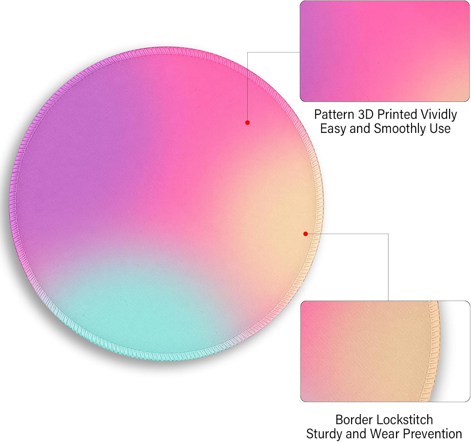 Gradient Pink Purple Work Mouse Pad, Small Round Mouse Pads for Desk, Mini Travel Mousepad for Wireless Computer Laptop, Office Desk Accessories, 8.6 x 8.6 inch