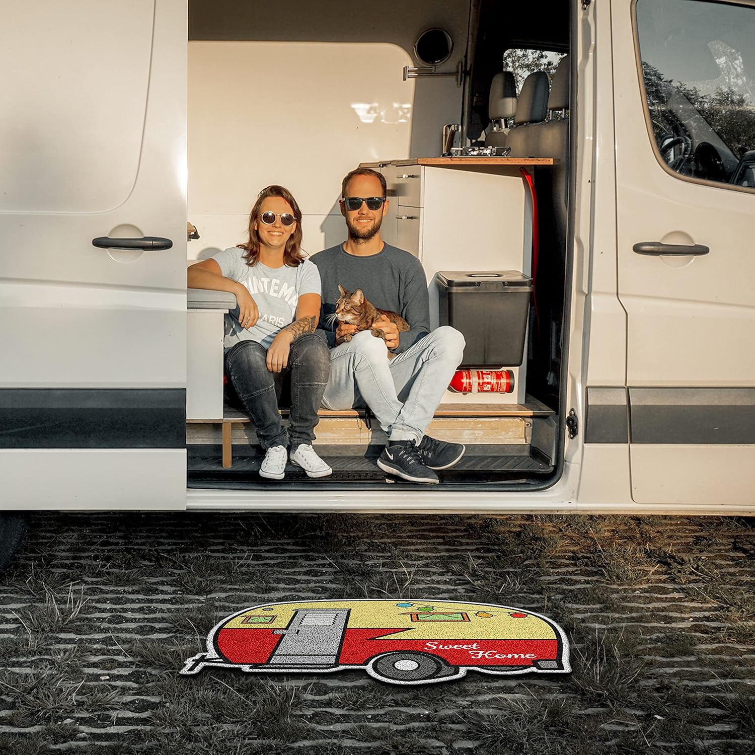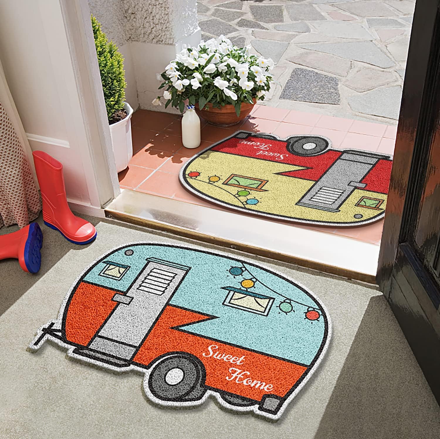 Unique RV design mat with an “Sweet Home ” logo, 2pcs set color package Vintage Trailer Doormat make it more attractive, a good gift For everyone RV lovers.