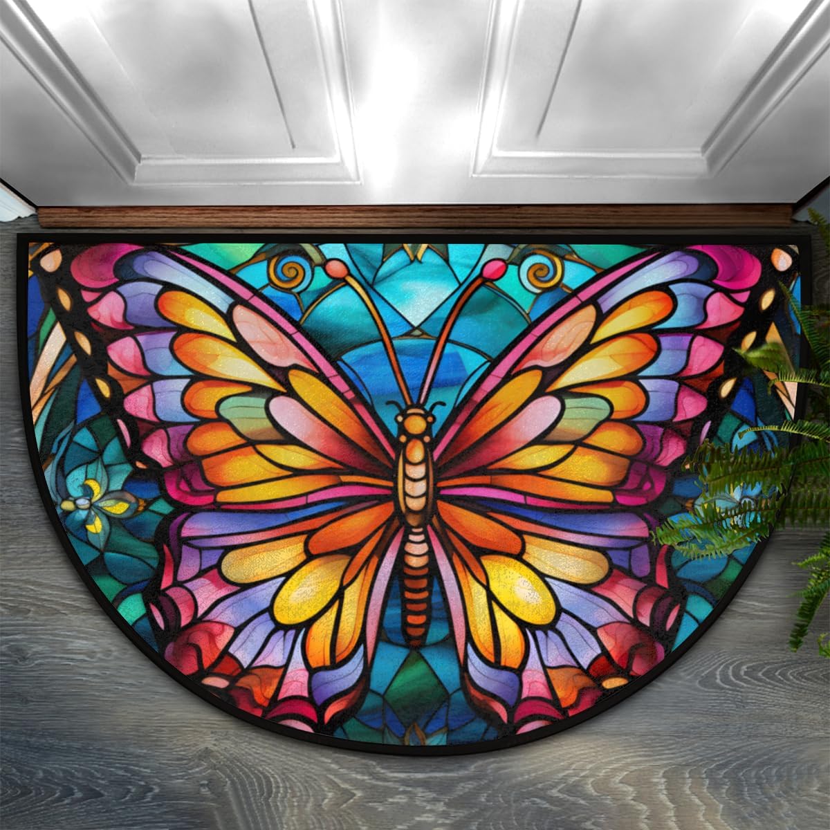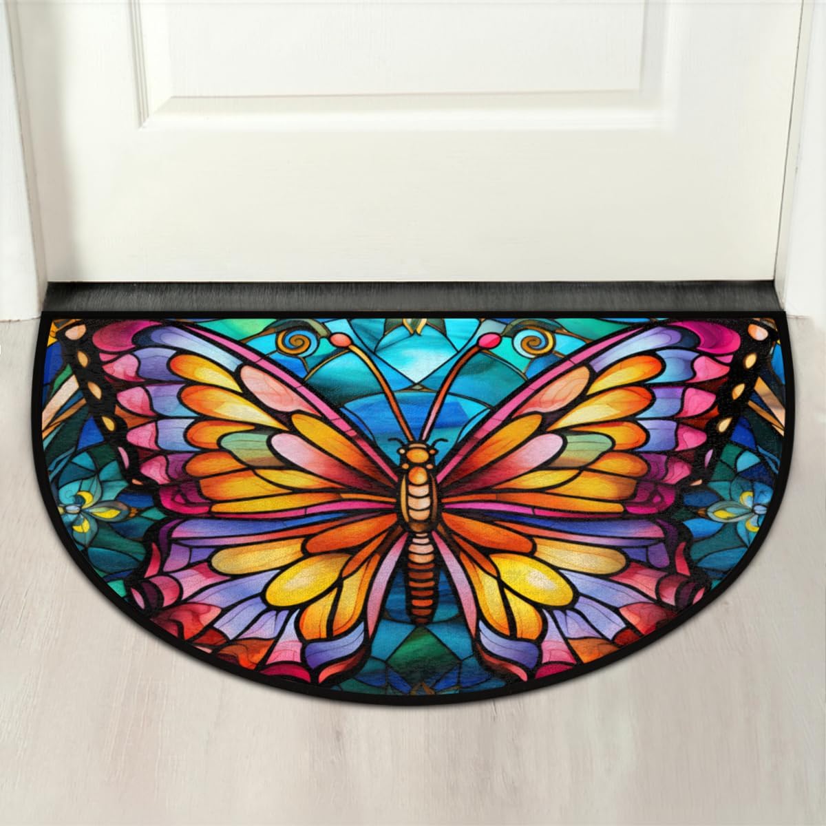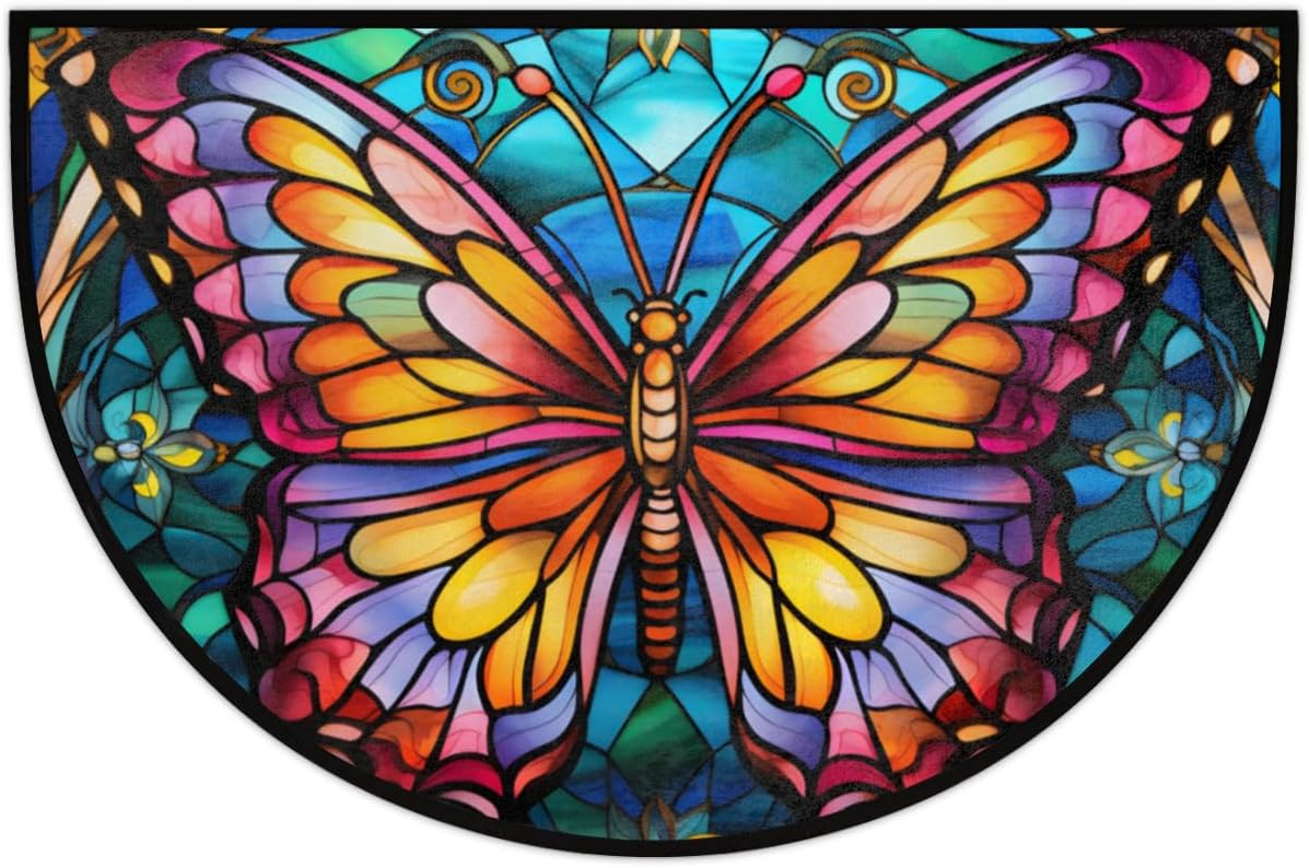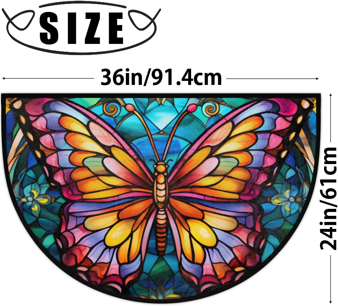 Half Round Door Mat Glass Butterfly Morocco Intdoor Entrance 36×24 In, Non-Slip Welcome Mat for Outdoor Semi Circle Bathroom Floor Rugs,House Entry Way Heavy Duty Doormat for Kitchen Living Room