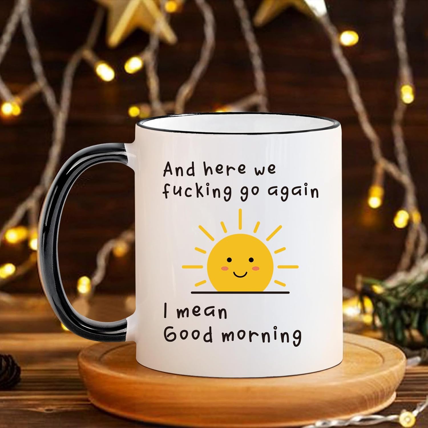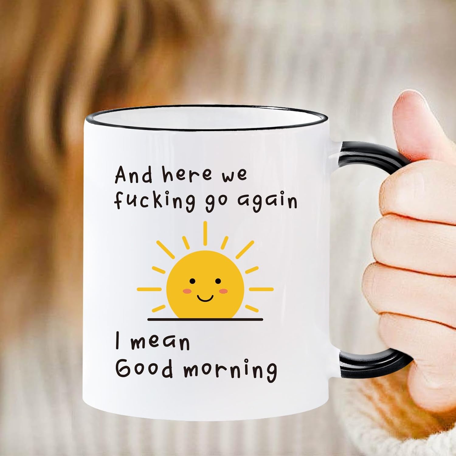 Here We F*cking Go Again I Mean Good Morning Coffee Mug – Funny Sarcastic Cup for Women, Men, Coworkers | Adult Humor Gift for Mom, Friends, Office