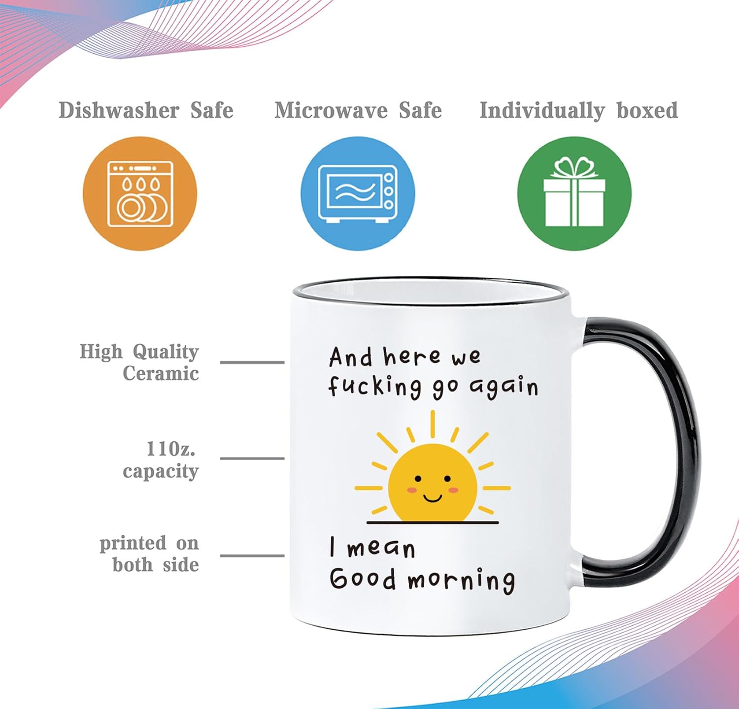 Be the first to review “Here We F*cking Go Again I Mean Good Morning Coffee Mug – Funny Sarcastic Cup for Women, Men, Coworkers | Adult Humor Gift for Mom, Friends, Office” Cancel reply